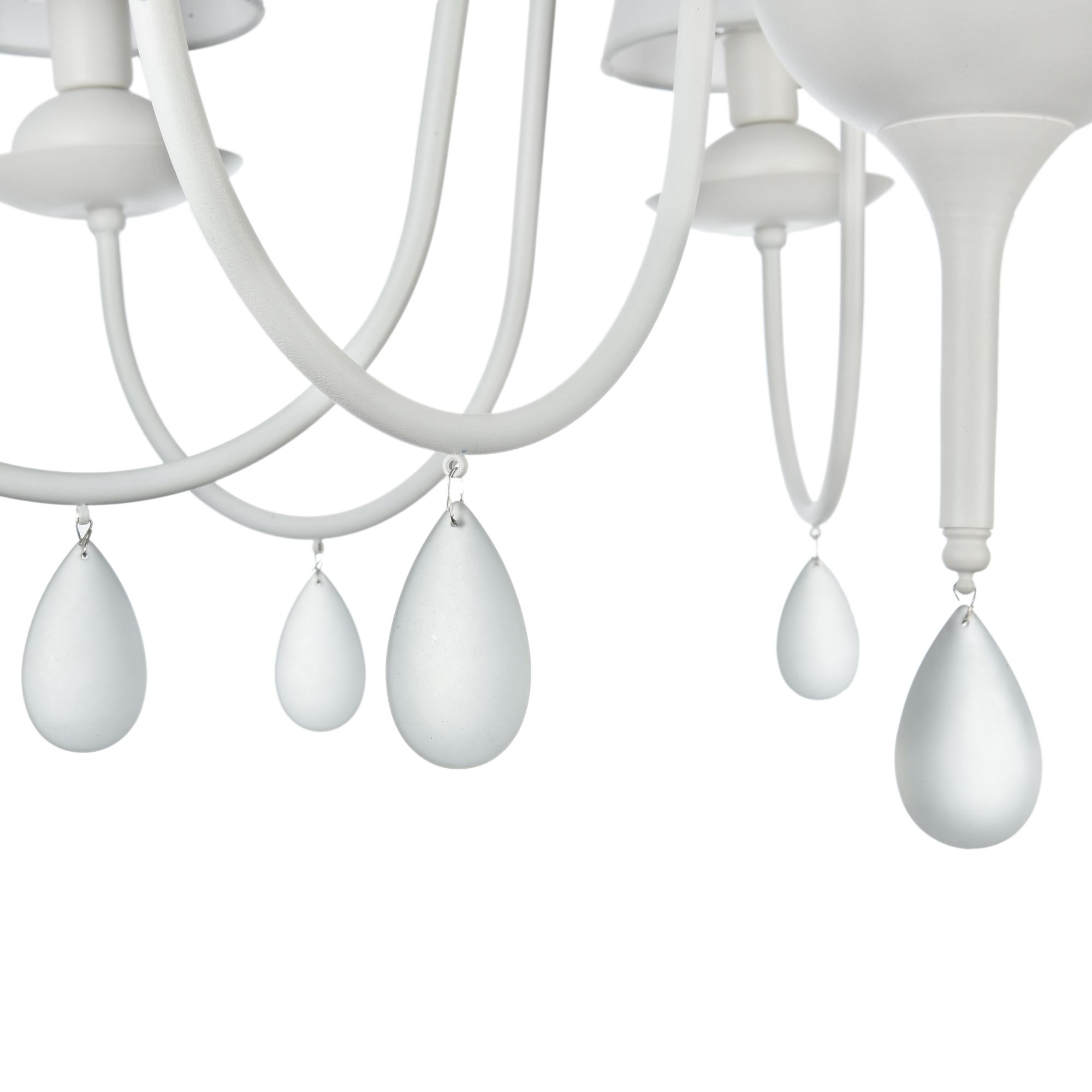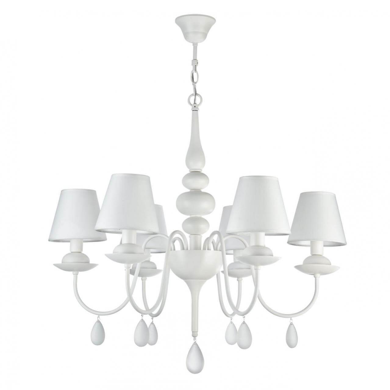 Дизайн светильников – это дуэт вечной классики и высоких технологий. Арматура и абажуры выполнены в приятном для глаз теплом белом цвете. Абажуры сделаны из ПВХ и ткани, а арматура - из стекла и металла. Светильники украшены декоративными стеклянными подвесками в виде капель. Люстра FR5756-PL-06-W; Высота-625; Высота при подвесном креплении--; Диаметр-752; Ширина--; Глубина--; Цоколь-E14; Мощность-40W