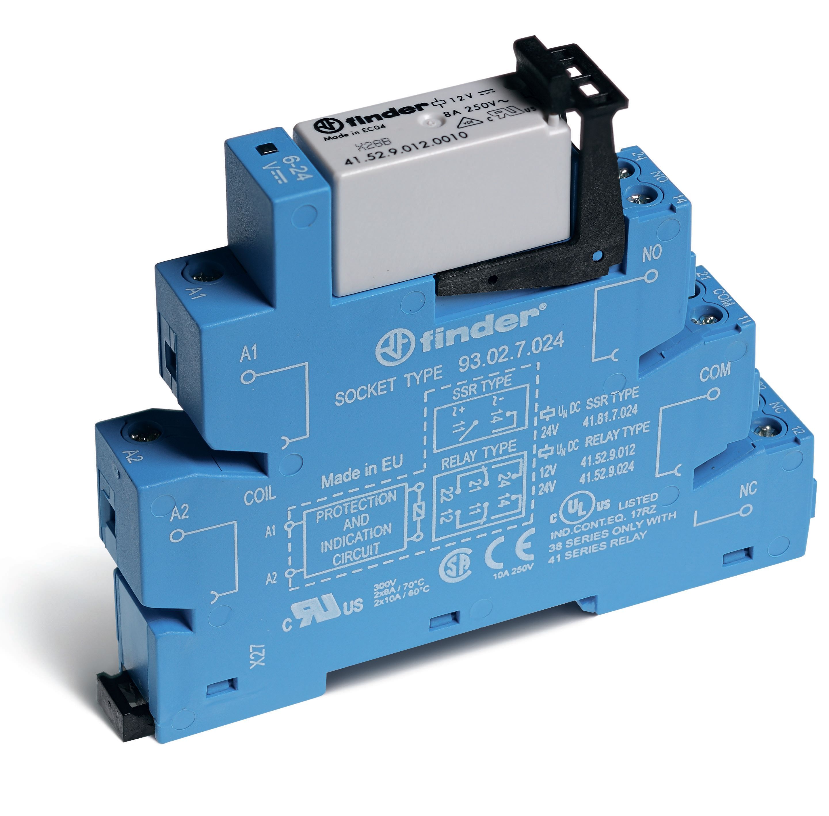 Finder Интерфейсный модуль (сборка 41.52.9.110.0010 + 93.02.8.230), электромеханическое реле; 2CO 8A; контакты AgNi; питание 230-240В AC; категория за