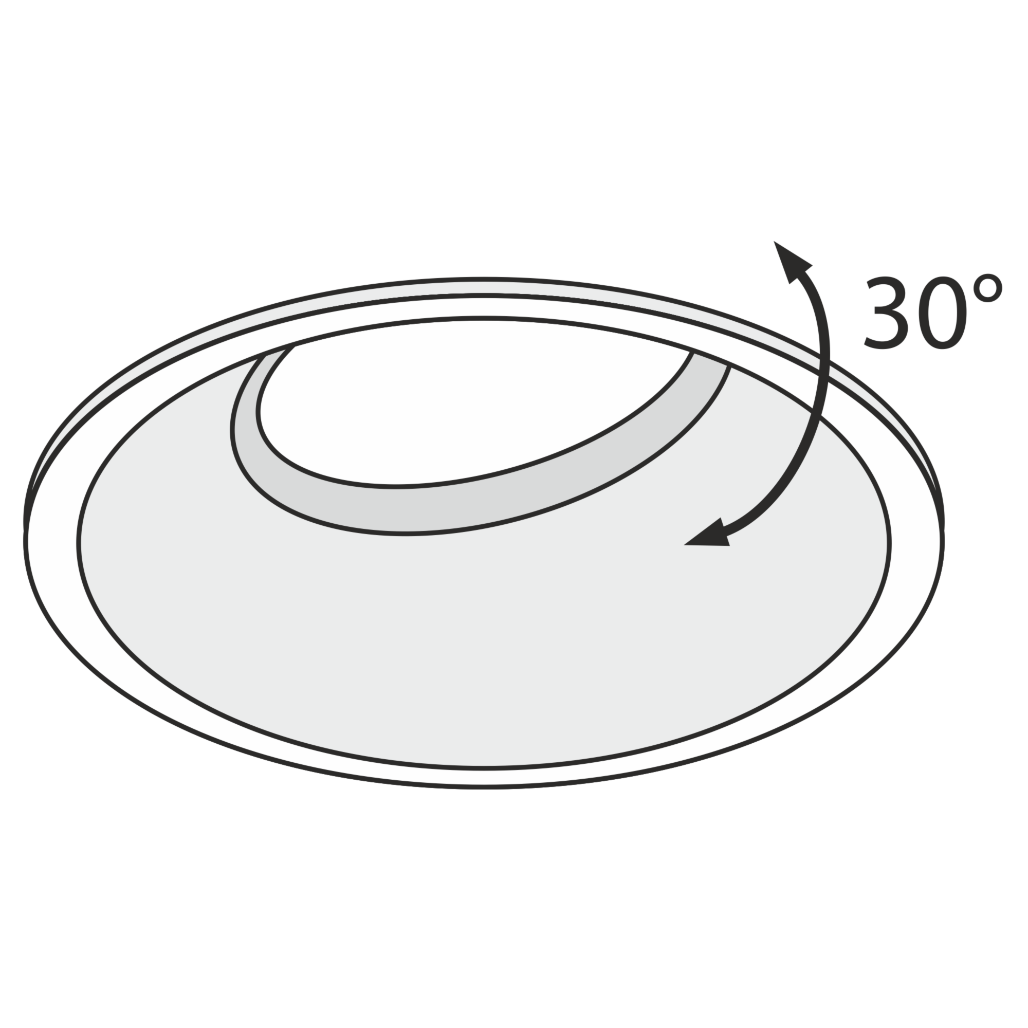 Глубоко утопленная от края лампа обеспечивает визуальный комфорт для наблюдателя. Конструкция предусматривает регулировку направления светового потока в одной плоскости с отклонением от оси на 30° Светильники сделаны из литого алюминия. При окрашивании используется стойкая к царапинам порошковая краска. Модели серии представлены в двух формах, черном и белом цвете. В качестве источника света рекомендуется использовать лампы Voltega (art. 7060/7061) мощностью 7W и углом рассеивания 38°. Диммируемые версии ламп — art. 7108/7109. Встраиваемый светильник GU10 50W (без лампы), белый литой алюминий. Конструкция предусматривает регулировку направления светового потока в одной плоскости с отклонением от оси на 30° Габаритные размеры: Диаметр - 93 мм Диаметр монтажного отверстия - 85 мм Глубина встройки - 110 мм