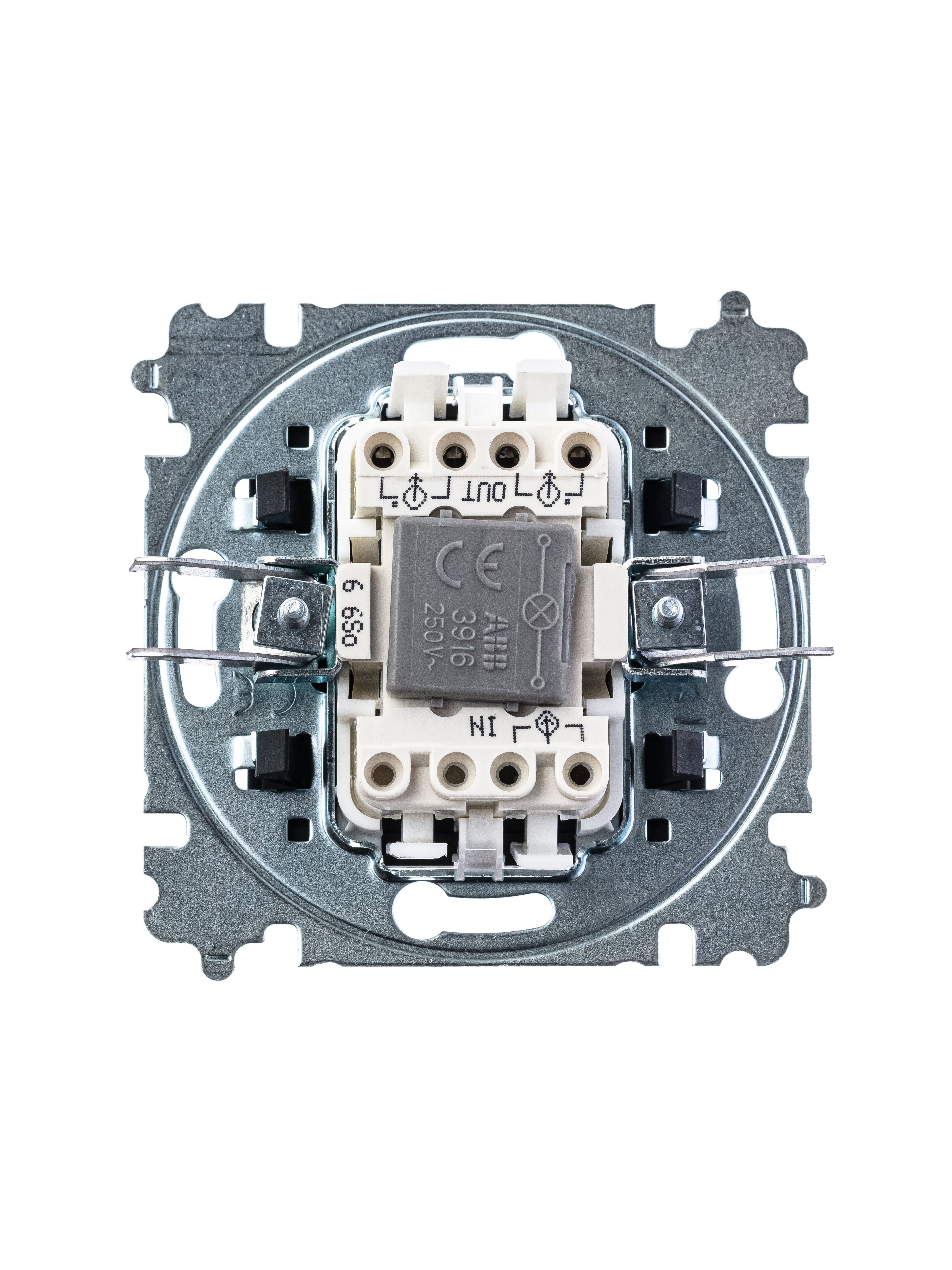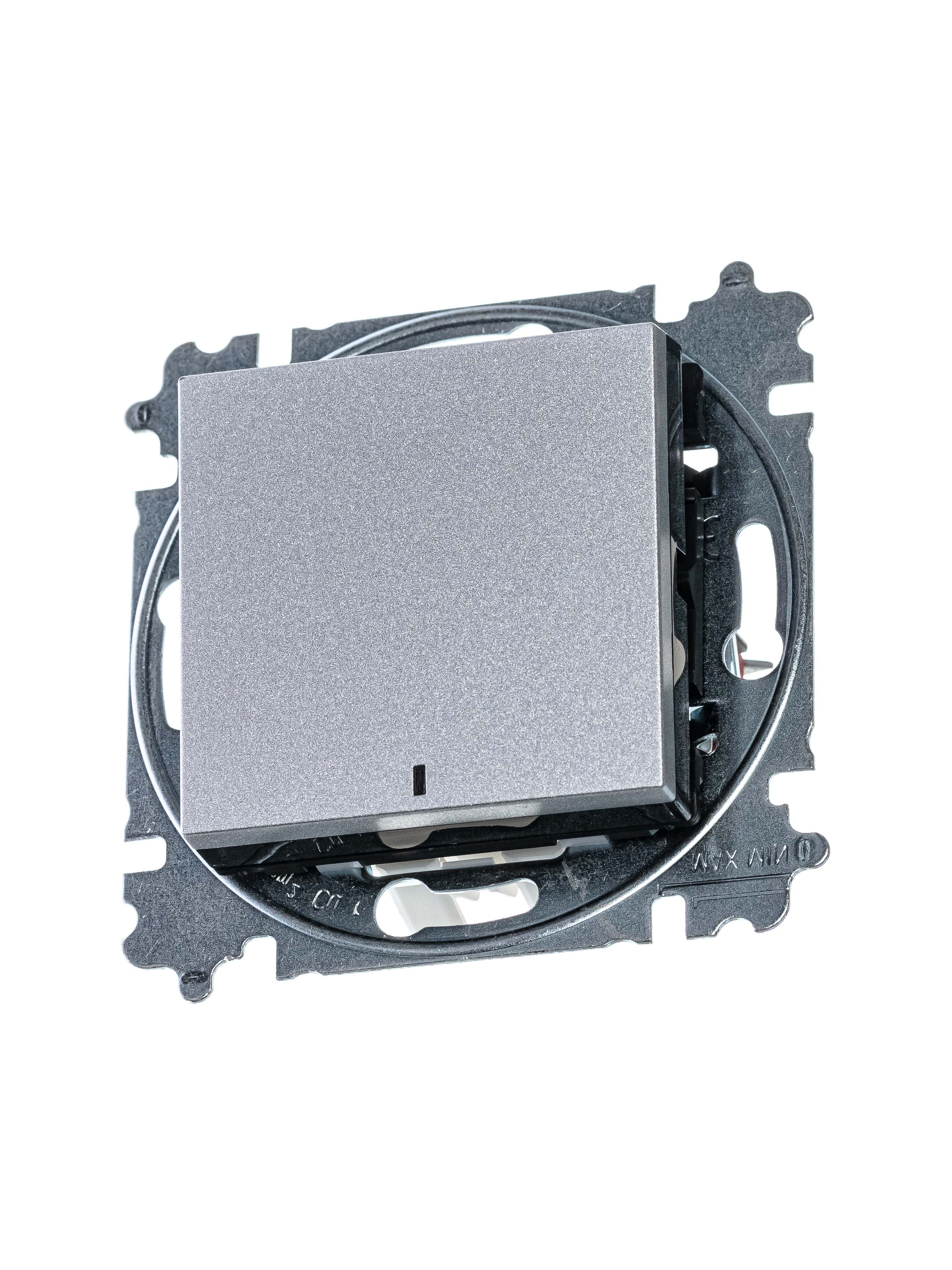 Механизм переключателя в комплекте c накладкой и блоком подсветки для установки в декоративную рамку. Подсветка LED ориентационная белого цвета