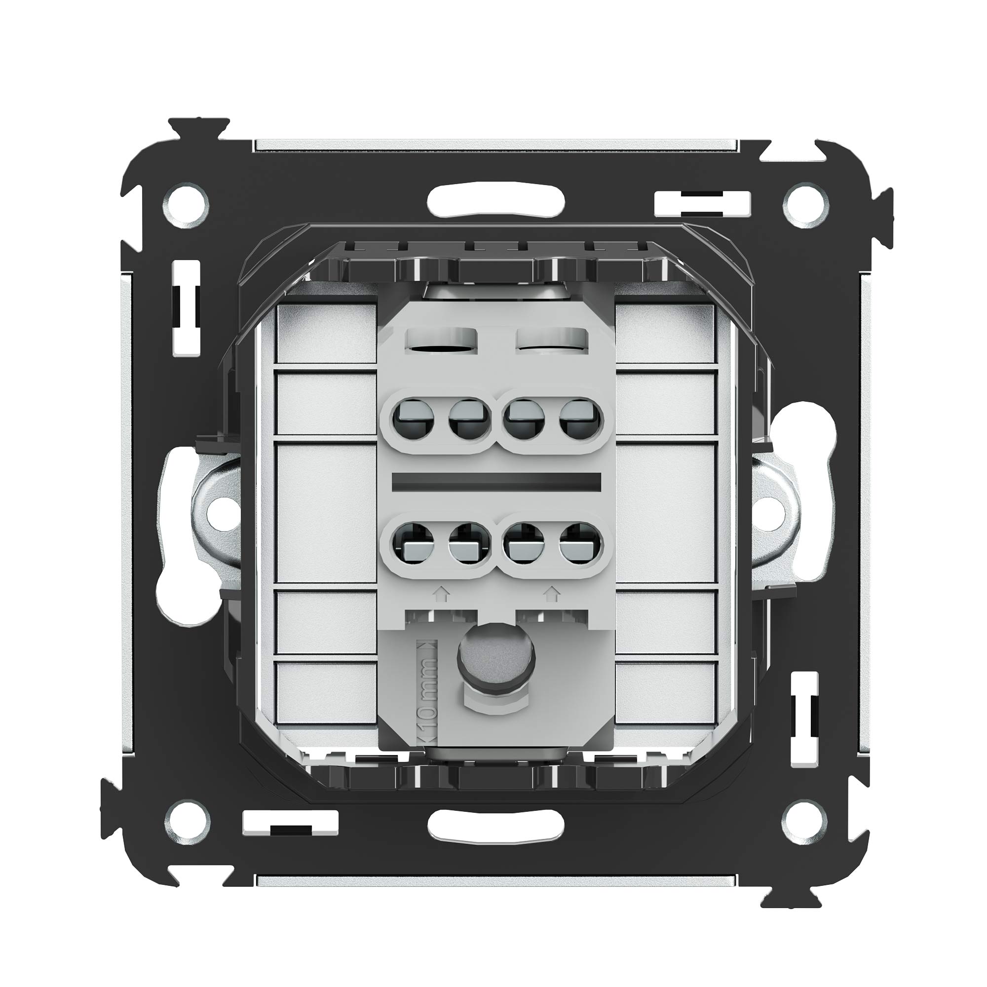 Инвертор одноклавишный модульный. Назначение: для монтажа в подрозеточные коробки (код 59301); включение/выключение освещения с трех и более мест. Характеристики: диаметр отверстий для ввода кабелей – 3 мм (по 2 отверстия на одну клемму); винтовые зажимы; шаблон для зачистки кабеля – 11 мм; номинальный ток – 16 A; номинальное напряжение – 230 В; фиксация в подрозеточные коробки при помощи каркаса с лапками (код 4400802) и саморезов. Кол-во модулей: 2. Цвет: "Закаленная сталь"