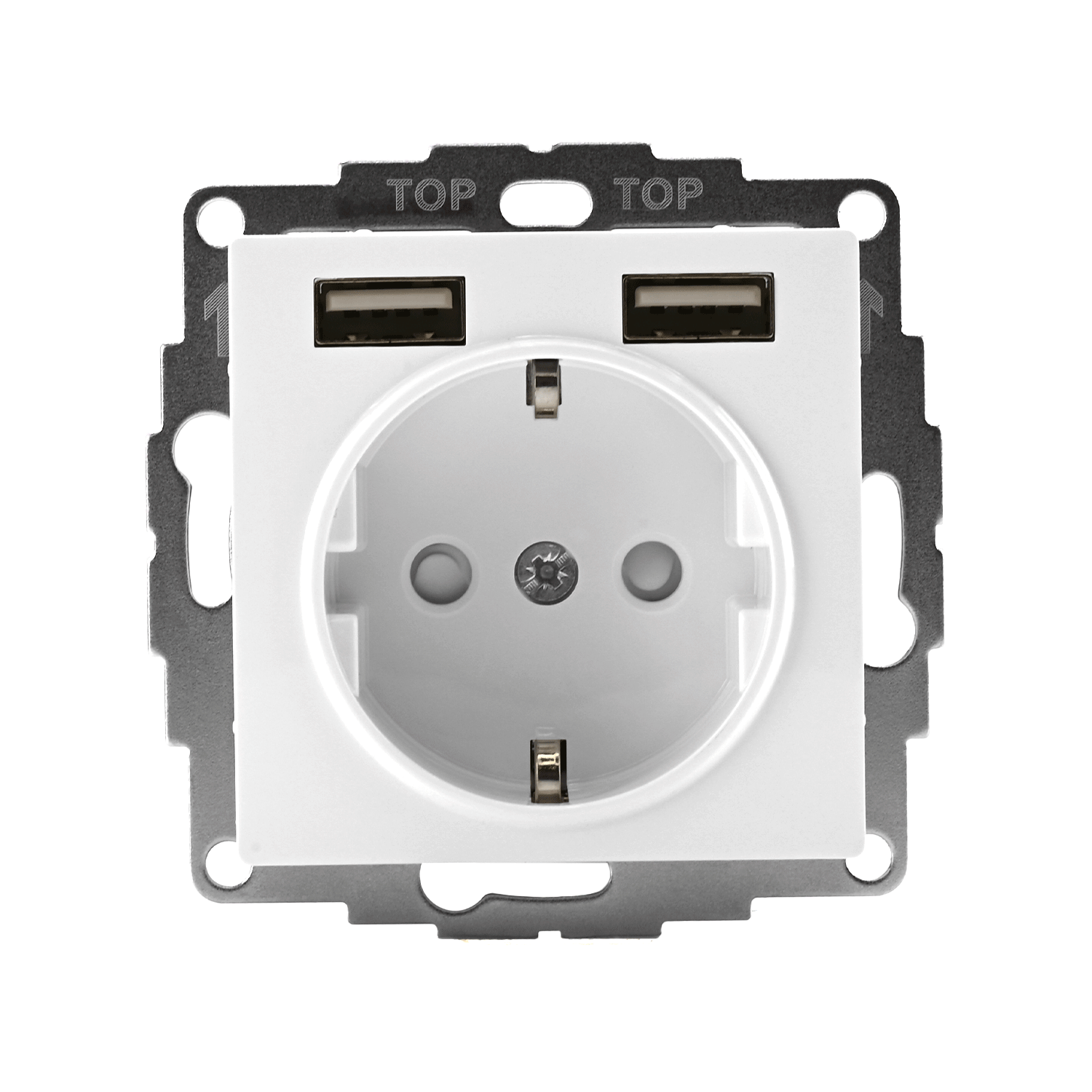 Systeme Electric AtlasDesign Белый Розетка SO + USB A+A, 5В/2,4А, 2х5В/1,2А, механизм