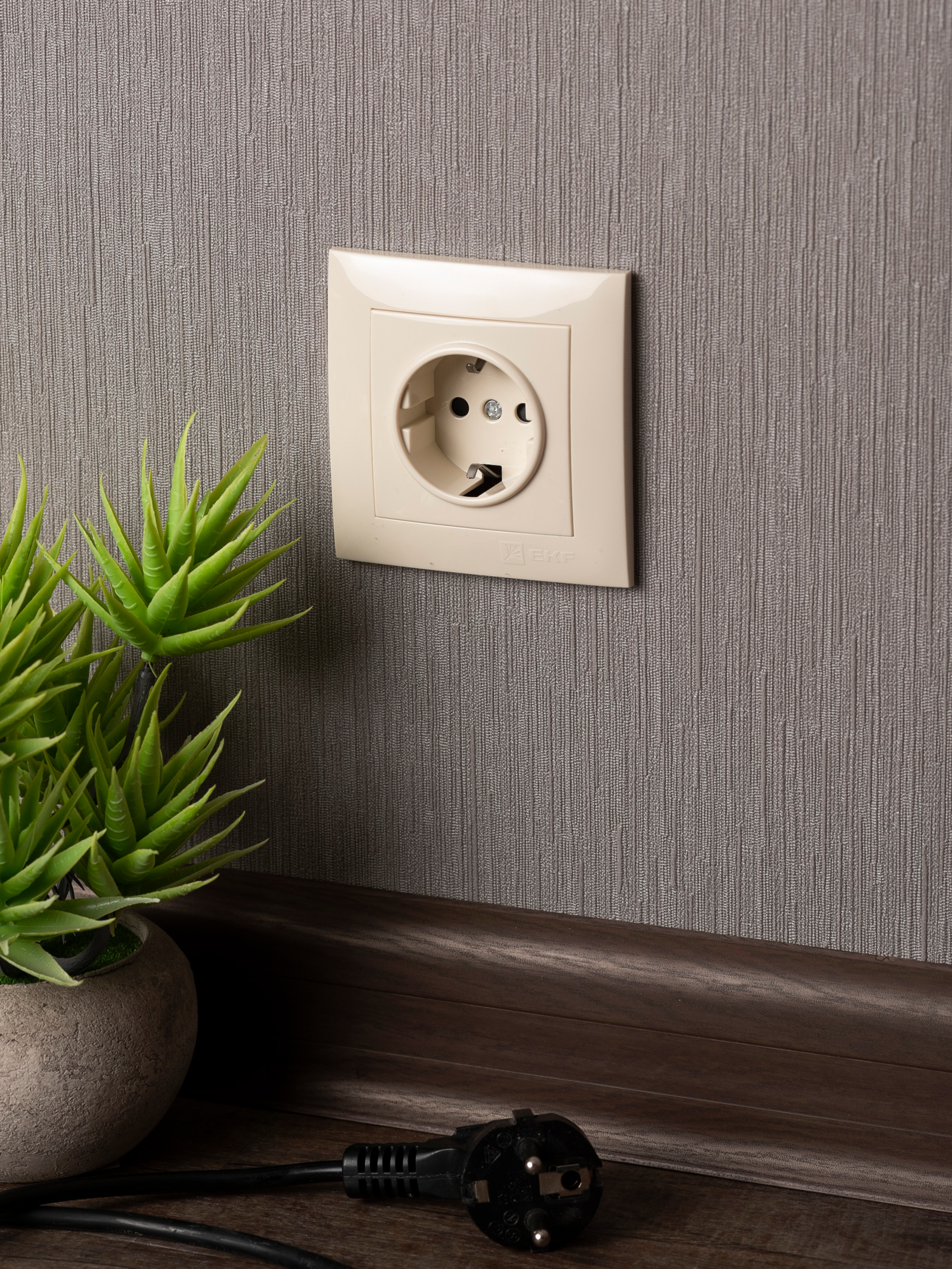 EKF PROxima Валенсия розетка 1-местная с/з 16А кремовая с защ. штор..
