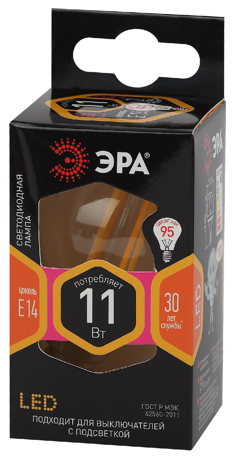 Название производителя: Лампа светодиодная ЭРА F-LED P45-11W-827-E14 11Вт филамент шар теплый белый свет Е14
