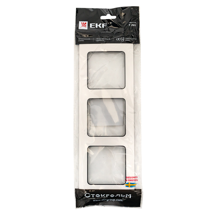 Рамка трехпостовая EKF серии Стокгольм станет отличным решением, чтобы вписать электроустановочное изделие в ваш интерьер. Выполнена из поликарбоната, устойчивого к ультрафиолетовому излучению.