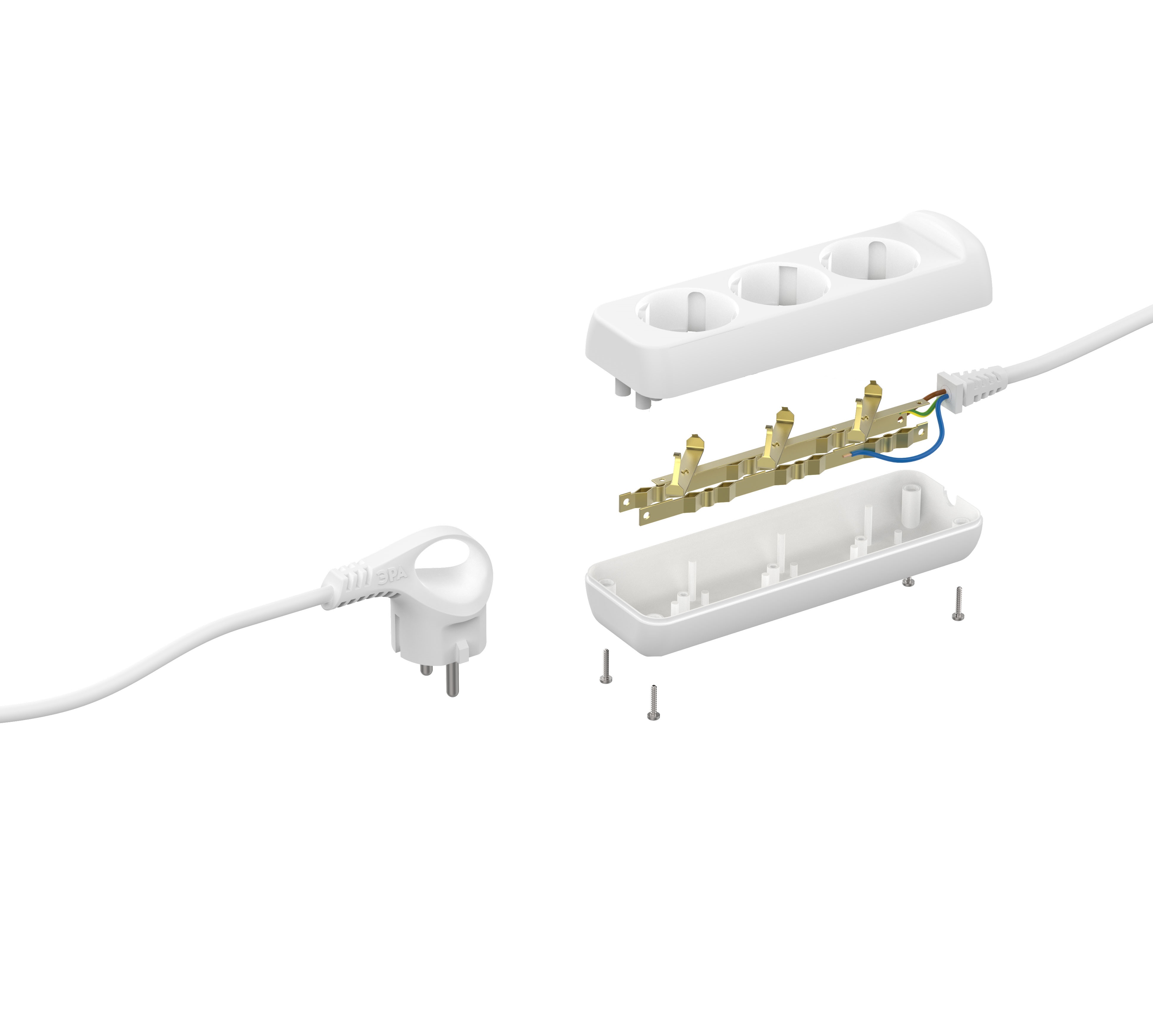 Название производителя: Удлинитель электрический ЭРА U-3e-1,5m-3x1,5 с заземлением 3 розетки 1,5м ПВС 3x1,5мм2 16А
