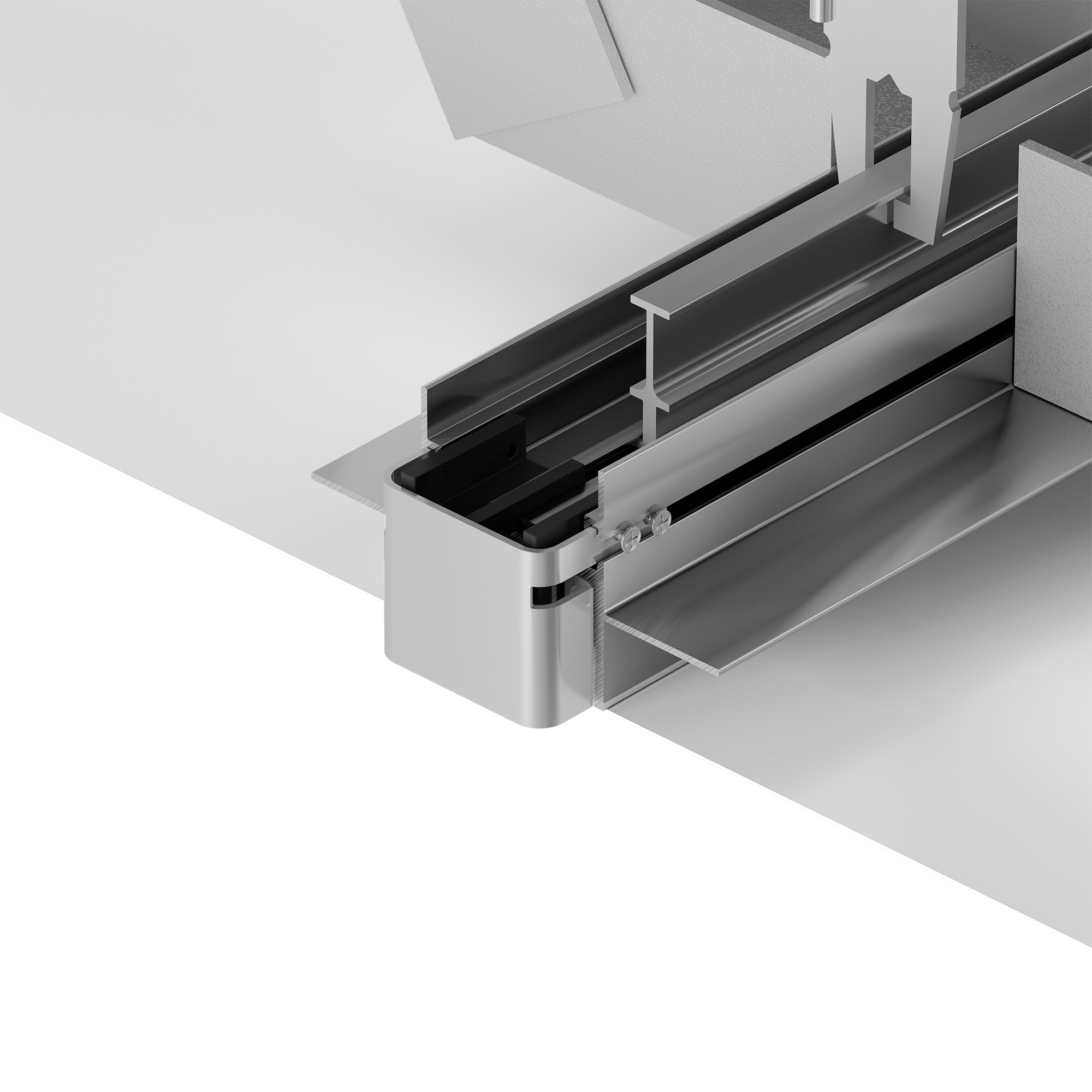 Заглушка металлическая для профиля FOLED. Имеет паз для крепления натяжного потолка, что позволяет создавать линию света, заканчивающуюся посередине потолка. Цена за 1 шт.
