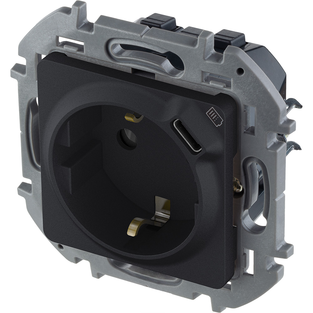 Legrand/Daccord INSPIRIA Антрацит Розетка 2К+З немецкий стандарт 16А 250В со встроенным зарядным устройством USB C 1.5А 5В.