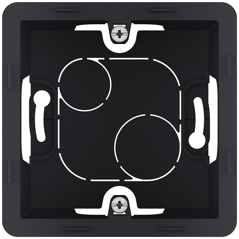 Коробка предназначена для накладного монтажа механизмов серии Inspiria и позволяет установить 1 механизм из данной коллекции. Конструкция коробки позволяет подключить провода наиболее удобным способом.