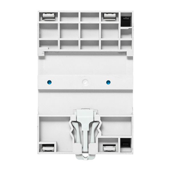 Модульные контакторы представляют из себя контактор в классическом корпусе модульного оборудования. Он состоит из неподвижных контактов, подвижных контактов, которые закреплены в подвижной части магнитной системы. Неподвижная часть магнитной системы закреплена жестко в корпусе КМ. Пружина препятствует смыканию контактов. При подаче напряжения на катушку управления в магнитной системе контактора возникает магнитное поле, которое, преодолевая сопротивление пружины, смыкает магнитную систему и замыкает контакты. При отключении напряжения с катушки управления пружина размыкает контакты. Возможна коммутация алюминиевым и медным проводом.
