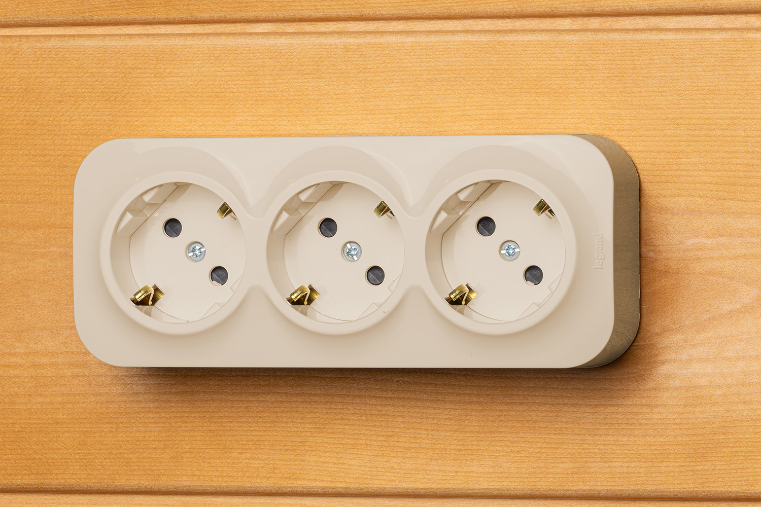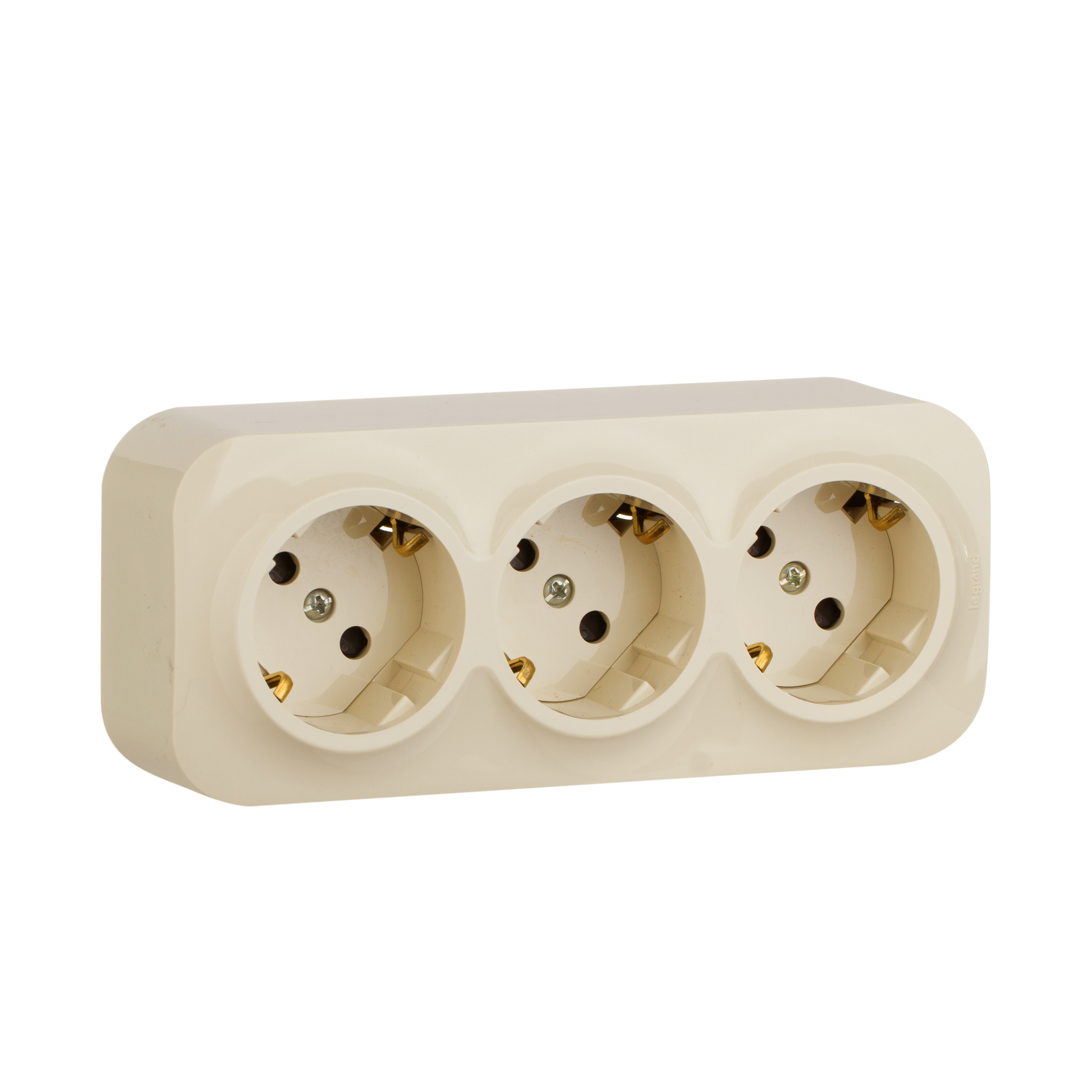 Тройная розетка с заземлением, со шторками Legrand Quteo, цвет слоновая кость, для открытого монтажа. Максимальный ток 16 А, максимальная мощность 3680 Вт. Применяется в зданиях, оборудованных для повышения безопасности проводкой с заземлением (с защитным проводником). Рекомендуются к применению в помещениях в которых могут быть дети. Шторки осуществляют защитную функцию путём ограничения доступа к токоведущим контактам. Доступ открывается только при подключении вилки.