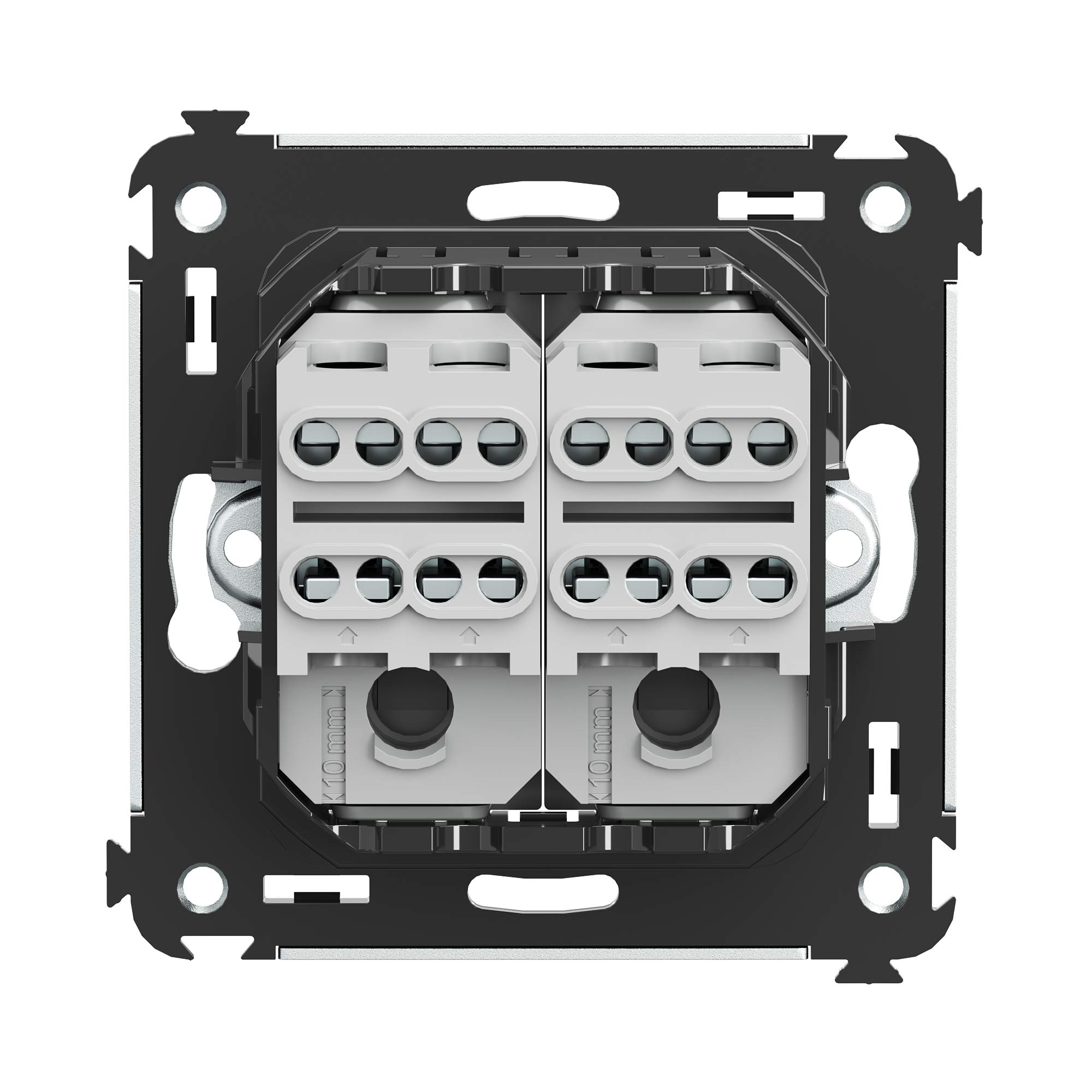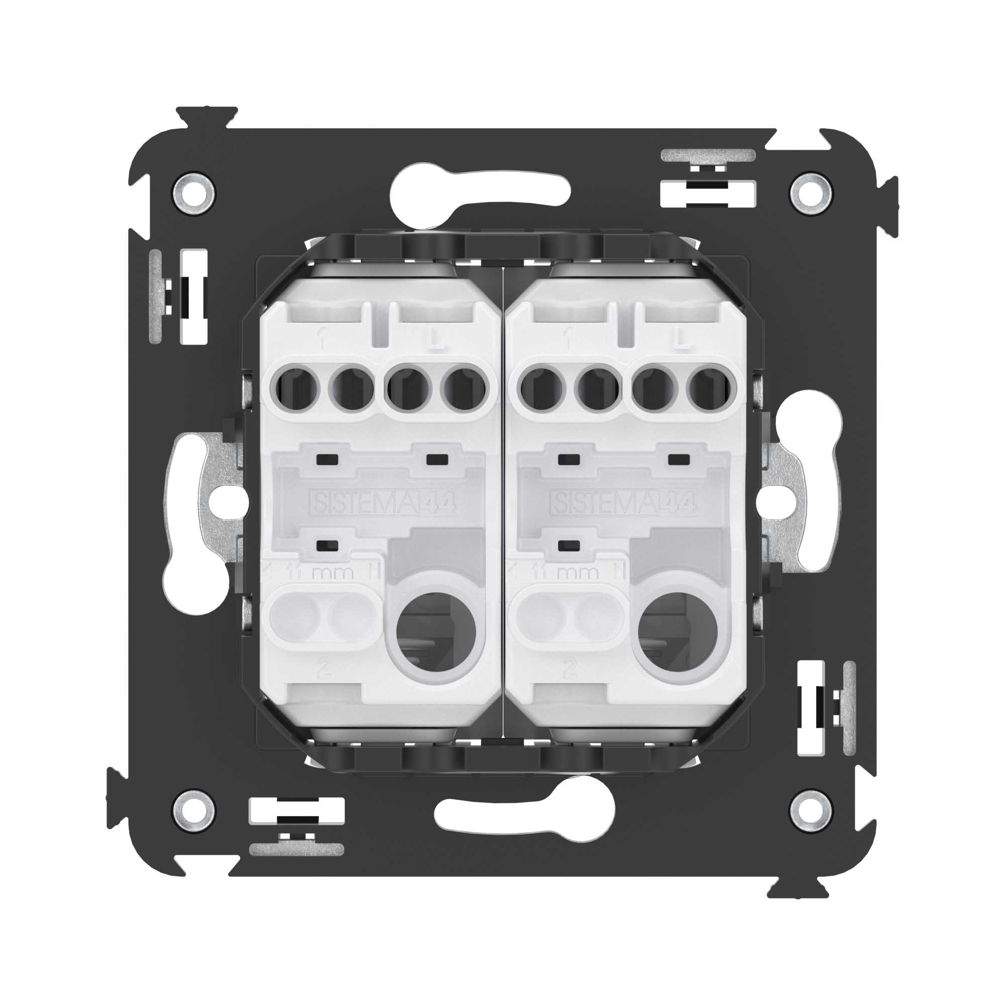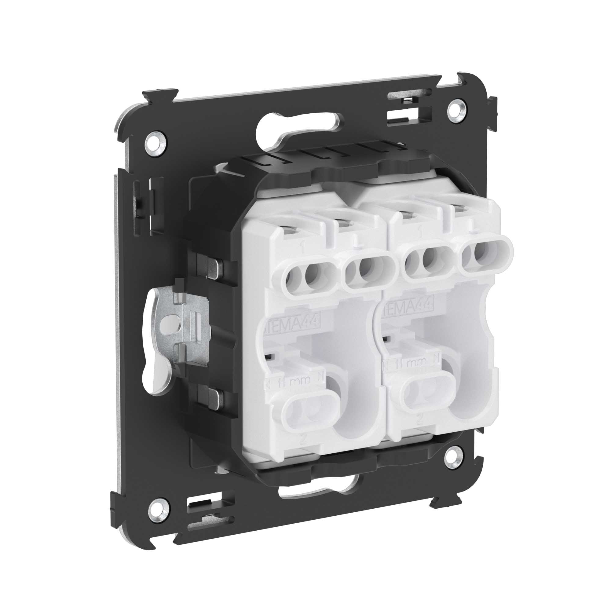 Инвертор двухклавишный. Назначение: для монтажа в подрозеточные коробки глубиной не менее 45 мм (код 59301). Служит для включения/выключения освещения с трех и более мест. Характеристики: 2 модуля, диаметр отверстий для ввода кабелей – 3 мм (по 2 отверстия на одну клемму); винтовые зажимы; фиксация в подрозеточную коробку при помощи саморезов; шаблон для зачистки кабеля – 11 мм; номинальный ток – 16 A; номинальное напряжение – 230 В. Цвет: "Белое облако".