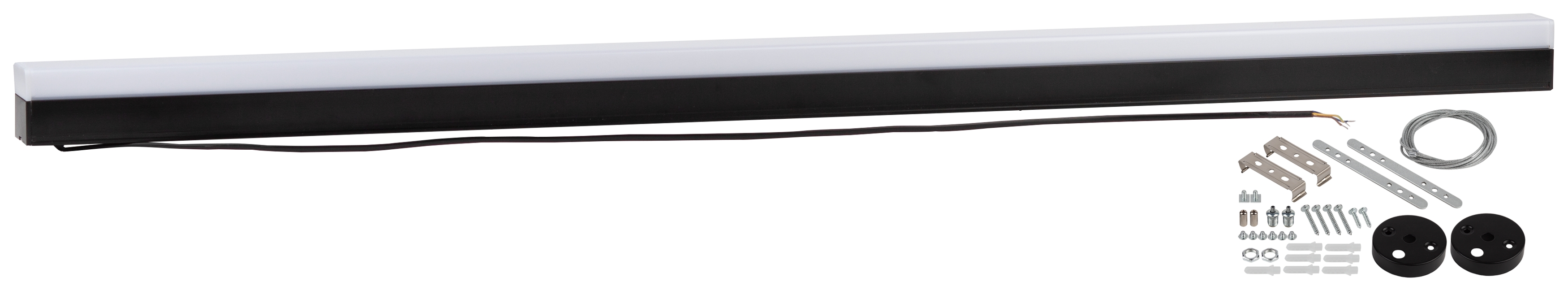 В крепёжный набор входят 2 комплекта креплений - для накладного и подвесного монтажа. Длина троса 1м. Длина шнура питания 1м. Доступны два варианта цветовой температуры светильников и модулей – светят белым дневным или холодным белым светом. Высокий уровень цветопередачи и низкие пульсации обеспечивают максимально комфортное освещение. Современное решение для общего освещения офисных, торговых и общественных пространств, а также интерьеров в стиле hi-tech.