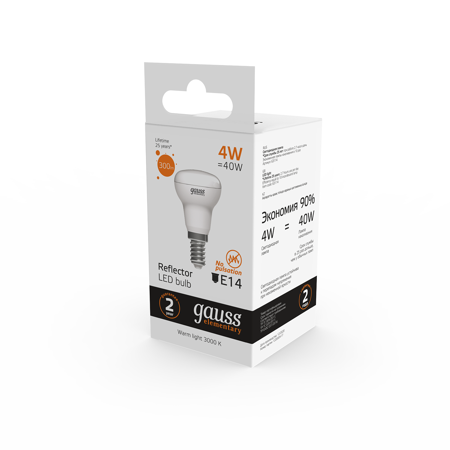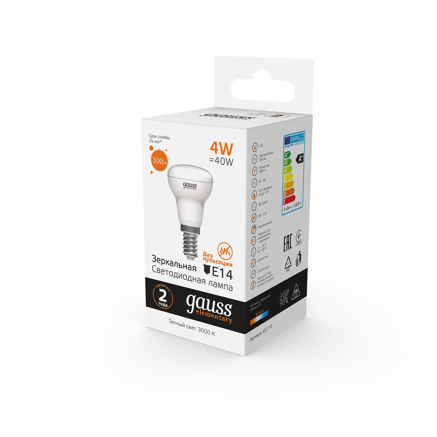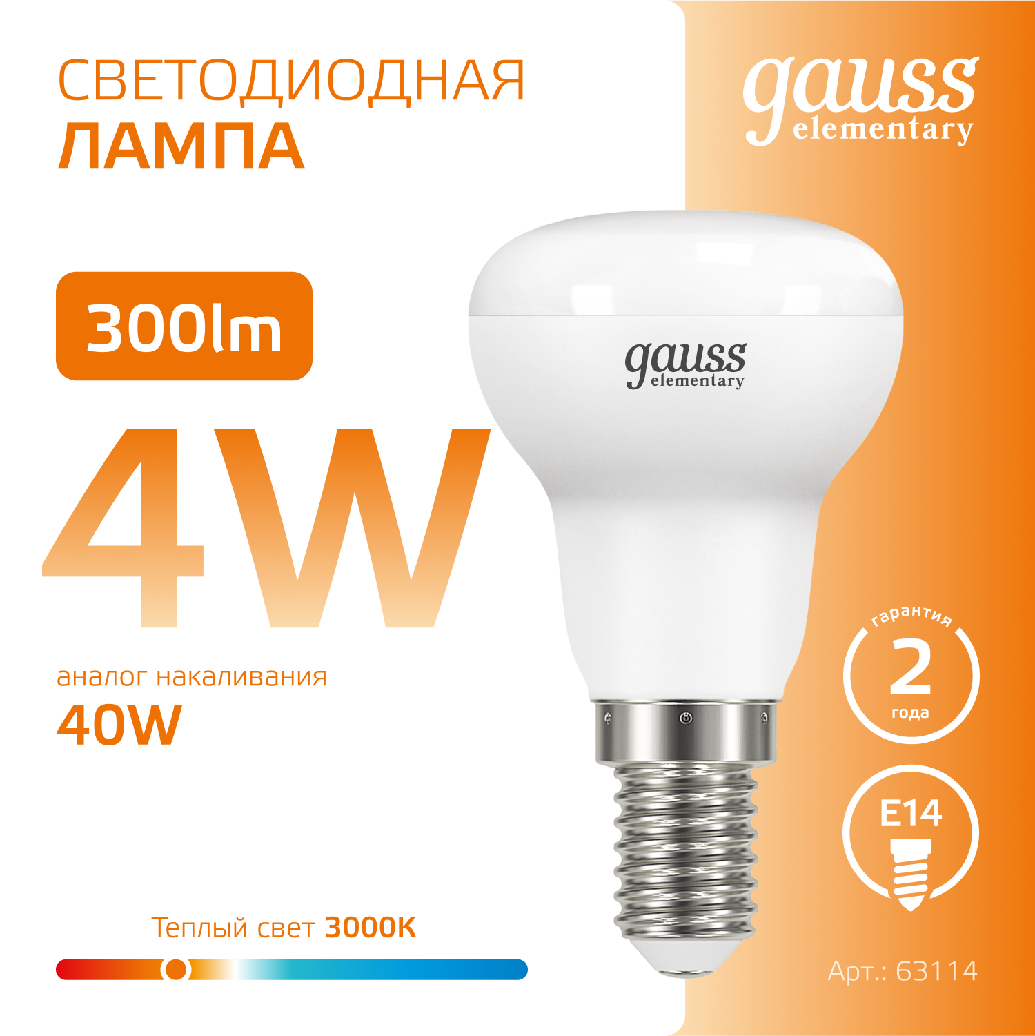 Название производителя: Лампа Gauss Elementary R39 4W 300lm 3000K E14 LED 1/10/50