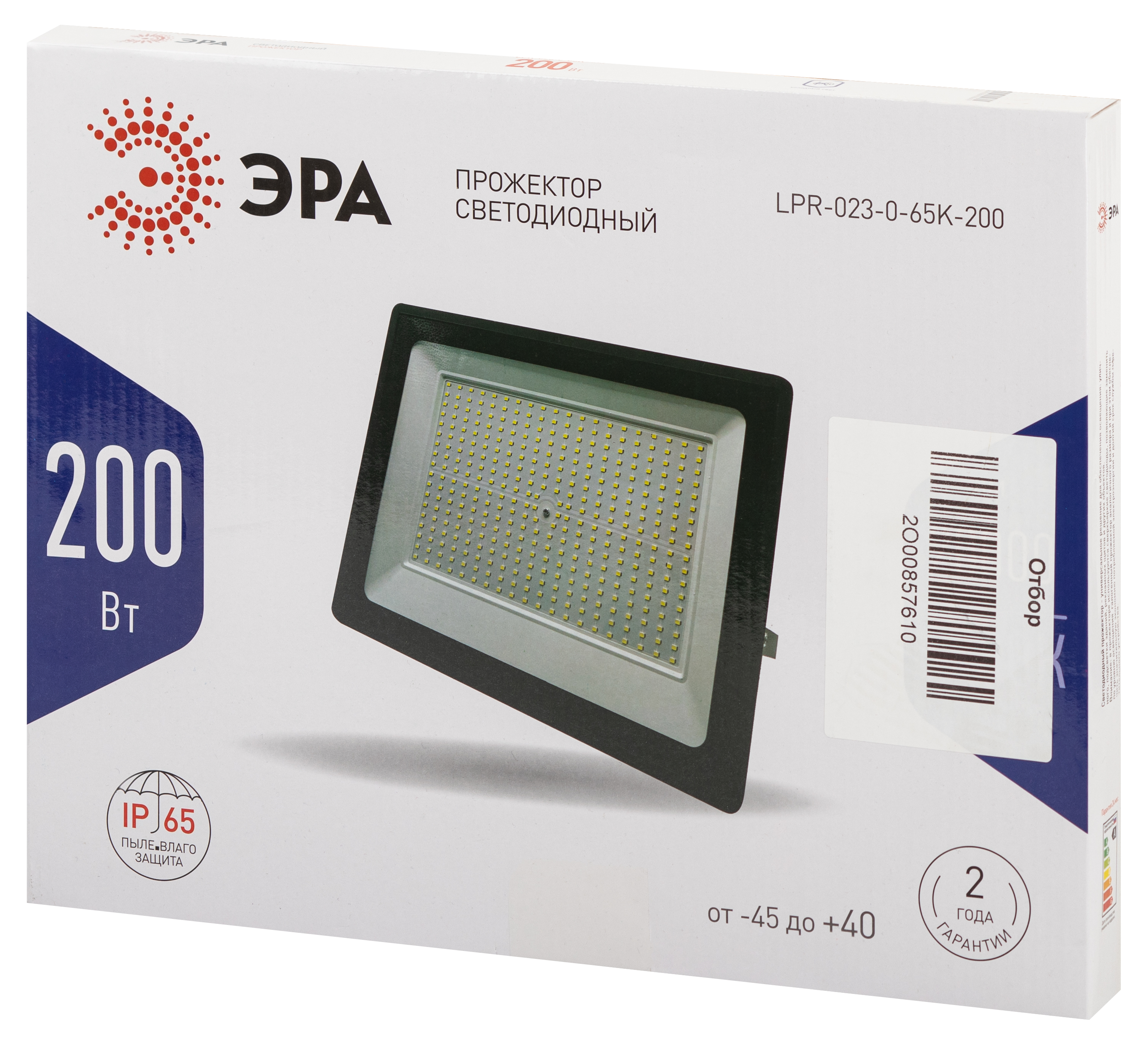 Название производителя: Прожектор светодиодный уличный ЭРА LPR-023-0-65K-200 200Вт 6500K IP65 гарантия 2 года