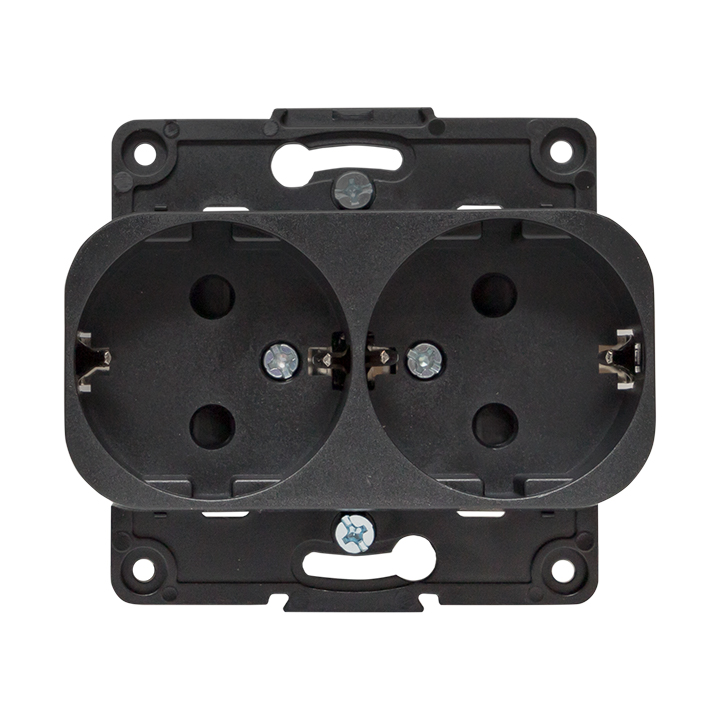 EKF PROxima Стокгольм Черный Розетка 2-ая с/з, со шторками, 16А.