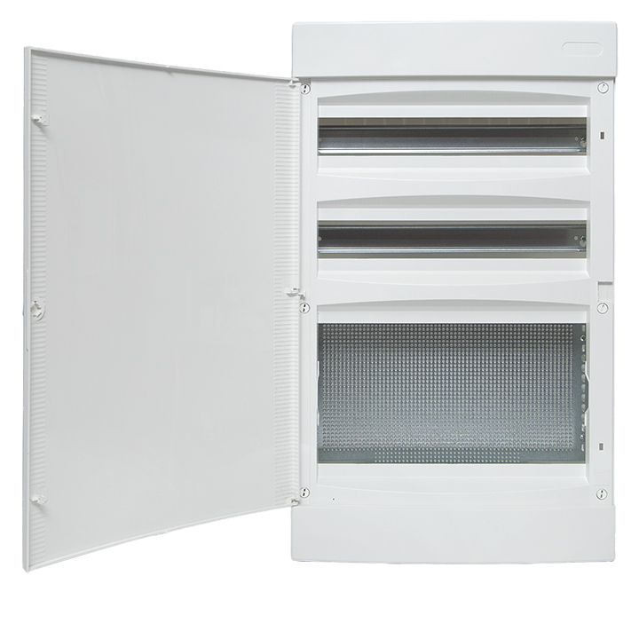 Корпуса пластиковые серии «Unix IP41» предназначены для сборки силовых распределительных и слаботочных щитов. На DIN-рейки устанавливается модульное оборудование. На монтажные платы - антенные разветвители, Wi-Fi роутеры, патч-панели и иное слаботочное оборудование. Щиты устанавливаются на поверхность стены. Ассортимент корпусов с din-рейками представлен размерами вместимостью до 72 модулей, по 12 или 18 модулей в ряду, с белой глухой или прозрачной тонированной дверью, с DIN-рейками или перфлорированными монтажными платами. Особенностью корпусов является плоское основание, упрощающее сборку и подключения внутри, лицевая панель Корпуса изготовлены из качественного глянцевого ABS-пластика, имеют минималистичный дизайн и впишутся в большинство интерьеров.