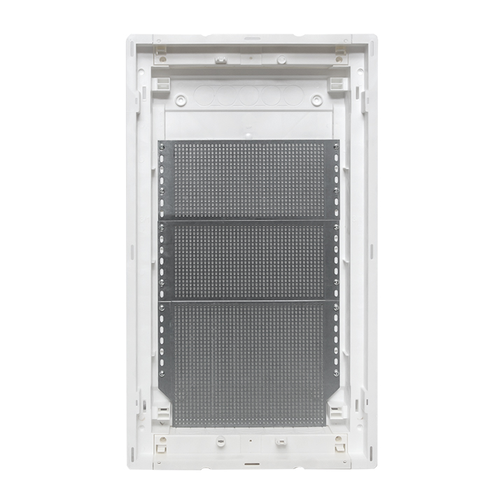 Корпуса пластиковые серии «Nova» предназначены для сборки силовых, слаботочных и комбинированных щитов. На DIN-рейки устанавливается модульное оборудование. На монтажные платы – антенные разветвители, Wi-Fi роутеры, патч-панели и иное слаботочное оборудование. Щиты устанавливаются как в бетонные и кирпичные стены, так и в гипсокартон, монтажные комплекты для установки в гипсокартон входят в комплектацию оснований щитов либо в комплектацию щитов в сборе. Двери щитов можно выбрать их разных материалов – пластик, металл или металл с перфорацией. Также доступны дополнительные аксессуары, необходимые для установки мультимедийного оборудования и существенно упрощающих монтаж щитов. Есть возможность приобрести как отдельно основание щита и дверь, так и основание с дверью в комплекте в одной коробке. Основные преимущества: съемные шасси с din-рейками, съемные кабельные фланцы, гребенка для фиксации входящих проводников, регулировка дверей по глубине, современный минималистичный дизайн