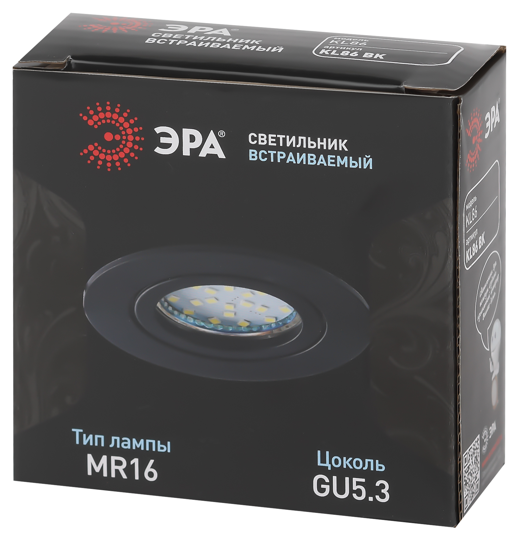 Название производителя: Светильник встраиваемый алюминиевый ЭРА KL86 BK под лампу MR16 GU5.3 черный