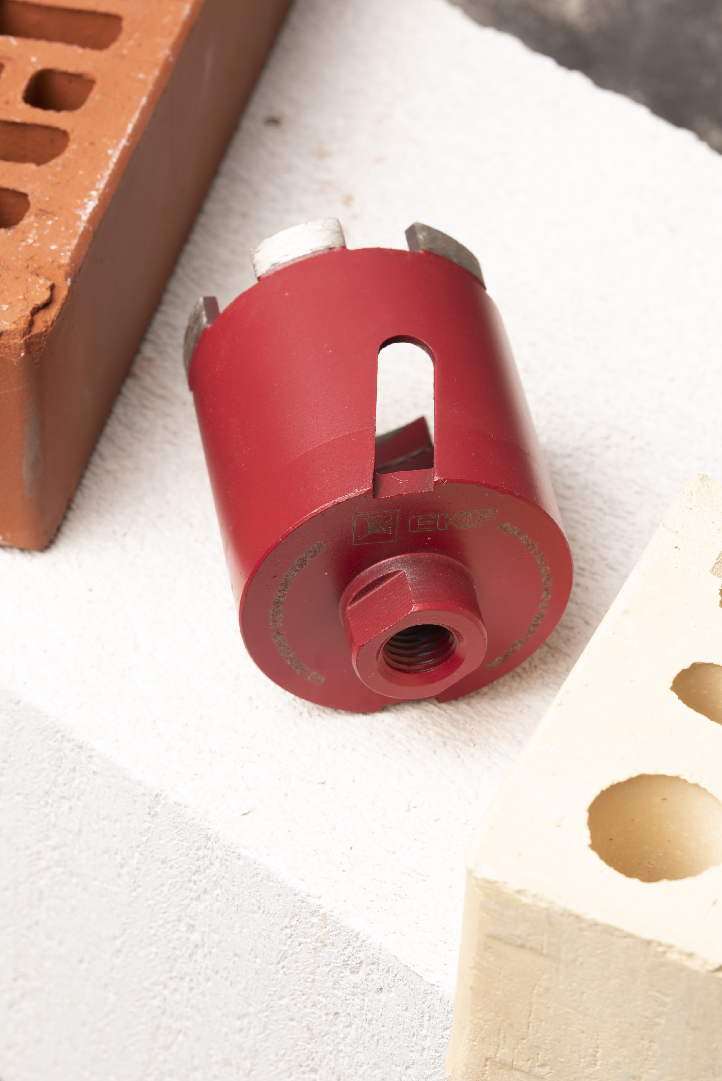 Коронки Алмазные коронки серии Professional для сухого сверления с технологией MicroHit. Применяются для бетона, в том числе тяжело армированного, с арматурой до 18 мм. Коронки подходят как для бытовых дрелей с микроударом мощностью от 1 кВт, так и для профессиональных буровых установок.