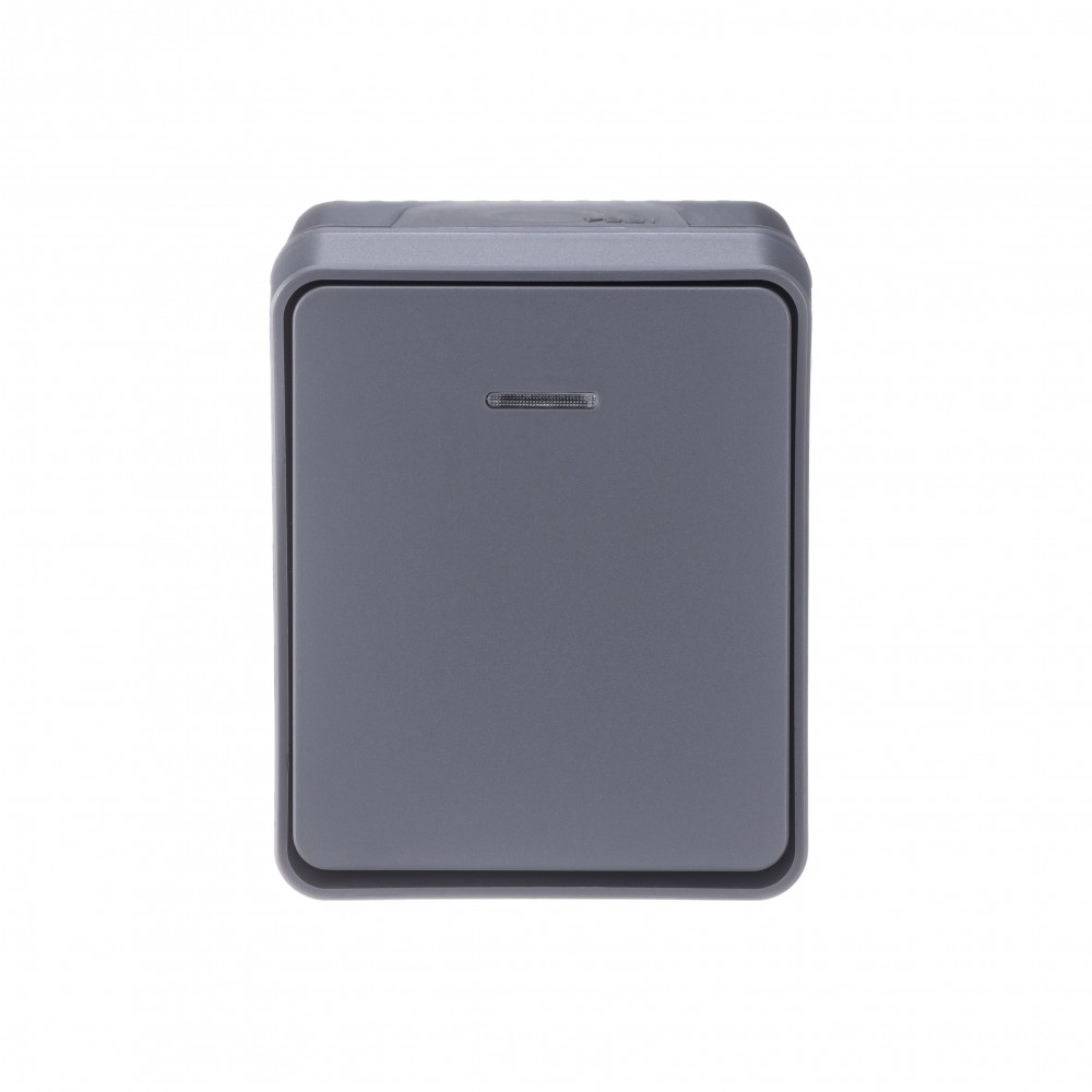 Выключатель 1-клавишный с подсветкой для открытого монтажа.