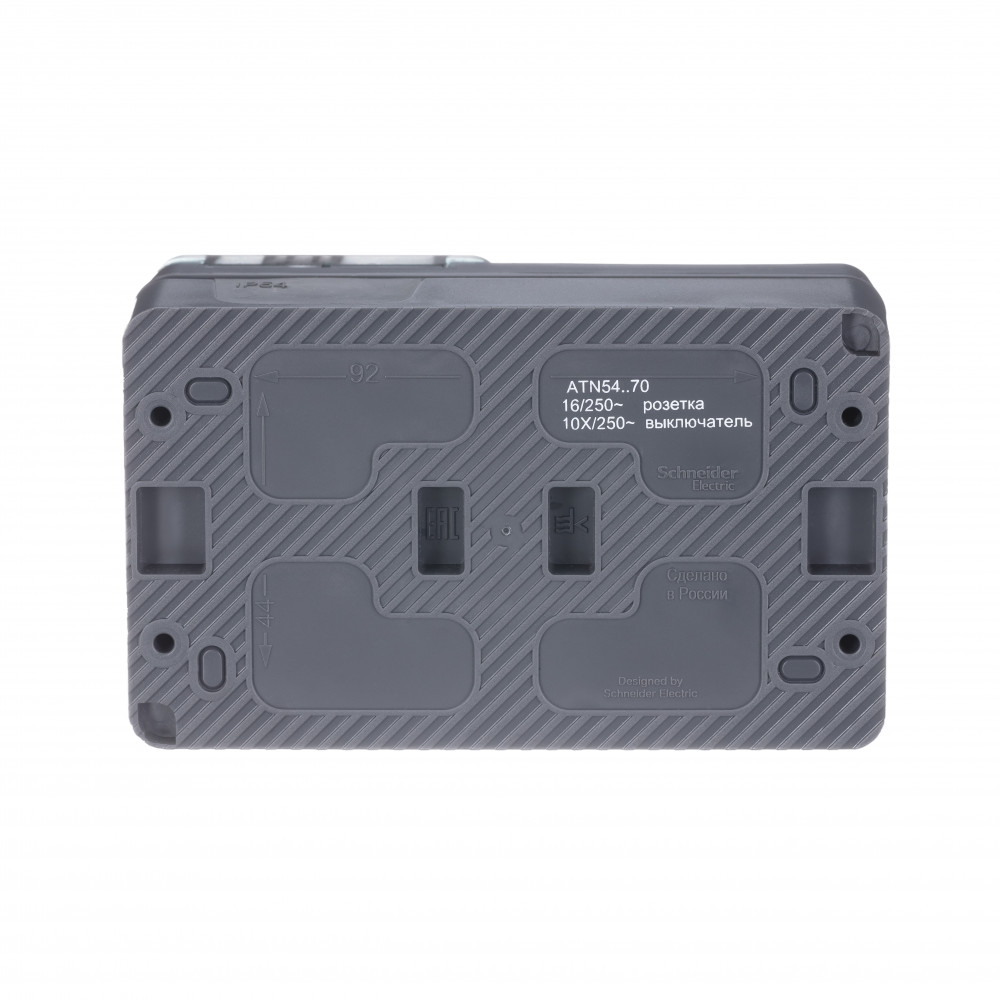 Блок для открытого монтажа из розетки с заземлением со шторками (16А, 250В) и 1-клавишного выключателя (10А). Степень защиты IP:54, Степень защиты IK: IK08. Продукция AtlasDesign Profi54 созданы специально для тех мест, где требуется повышенная защита от влаги и пыли. Уютная веранда в загородном доме, уличное кафе, любимый гараж или мастерская – выключатели и розетки будут обеспечивать надежную защиту и радовать глаз современным дизайном. Элегантный цвет антрацит гармонично впишется в любую обстановку.