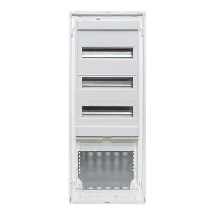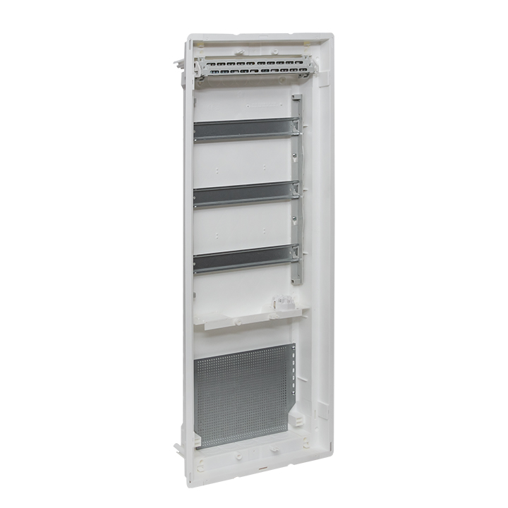 Корпуса пластиковые серии «Nova» предназначены для сборки силовых, слаботочных и комбинированных щитов. На DIN-рейки устанавливается модульное оборудование. На монтажные платы – антенные разветвители, Wi-Fi роутеры, патч-панели и иное слаботочное оборудование. Щиты устанавливаются как в бетонные и кирпичные стены, так и в гипсокартон, монтажные комплекты для установки в гипсокартон входят в комплектацию оснований щитов либо в комплектацию щитов в сборе. Двери щитов можно выбрать их разных материалов – пластик, металл или металл с перфорацией. Также доступны дополнительные аксессуары, необходимые для установки мультимедийного оборудования и существенно упрощающих монтаж щитов. Есть возможность приобрести как отдельно основание щита и дверь, так и основание с дверью в комплекте в одной коробке. Основные преимущества: съемные шасси с din-рейками, съемные кабельные фланцы, гребенка для фиксации входящих проводников, регулировка дверей по глубине, современный минималистичный дизайн