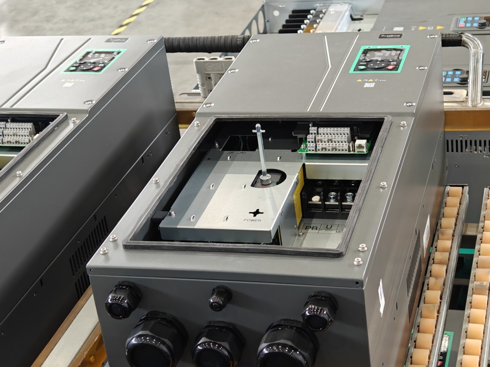 Преобразователь частоты SystemeVar 900 (STV900). Номинальная мощность: 22 кВт (G-тип: перегрузочная способность: 150% в течение 60с, 180% в течение 10с, 200% в течение 1с. Несущая частота ШИМ: 4 кГц), 30 кВт (P-тип: 120% в течение 60с. Несущая частота ШИМ: 2 кГц). Номинальный ток: 45 А (G-тип) / 60 А (P-тип). Питающее напряжение 3Ф 380В (-15%) ~ 440В (+10%). Степень защиты IP55. Встроенный DC-реактор. Встроенный тормозной прерыватель. Встроенный-ЭМС фильтр (Класс С3, согл. EN 61800-3). Коммуникационный протокол: Modbus RTU. Кол-во входов/выходов: 6DI, 2AI, 2DO, 2RO, 1AO. Степень защиты: IP55. Покрытие плат (Класс 3С2, согл. EN 60721-3-3). Температура окружающей среды: от -10°C до +50°C (до +40°C без ухудшения номинальных характеристик). Скалярное управление, векторное управление (без/c обратной связи по скорости). Работа как с асинхронными, так и с синхронными двигателями. 3 слота для расширения функциональности (возможность использования дополнительных коммуникационных карт, карт расширения входов/выходов, карт энкодеров, карты ПЛК, карты внешнего питания цепей управления 24V DC). Встроенная функция безопасности STO (Safe torque off), SIL2. Встроенный рубильник (для отключения сетевого питания). Габаритные размеры (ДхШхВ), мм: 274х279,5х522. Вес: 21 кг.