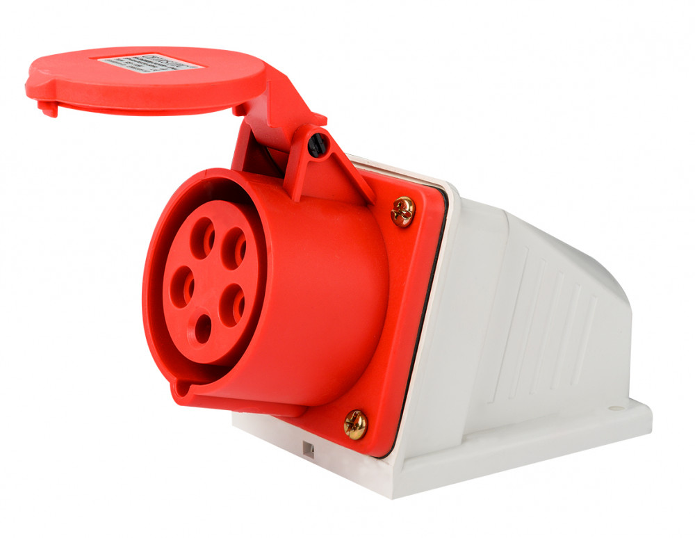 Розетка стационарная серии РС-103 Dekraft, номинальный ток 16 А, диапазон рабочего напряжения 380-415 В AC, степень пыле-влаго защиты IP44, количество полюсов 3Р+РЕ+N, код CEE 115.