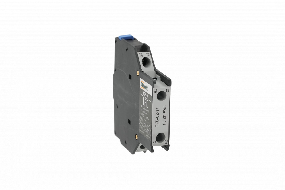 Приставка контактная серии ПКБ-02-20 для контакторов КМ-102 DEKraft; кол-во контактов - 2НО; ном.ток 10 А; ном.напряжение до 690 В; установка с боковой стороны; степень защиты IP20. Приставки контактные предназначены для увеличения количества вспомогательных контактов контактора. Приставки боковой установки ПКБ-02-20 позволяют значительно сэкономить на глубине шкафа, который будет стоить дешевле.