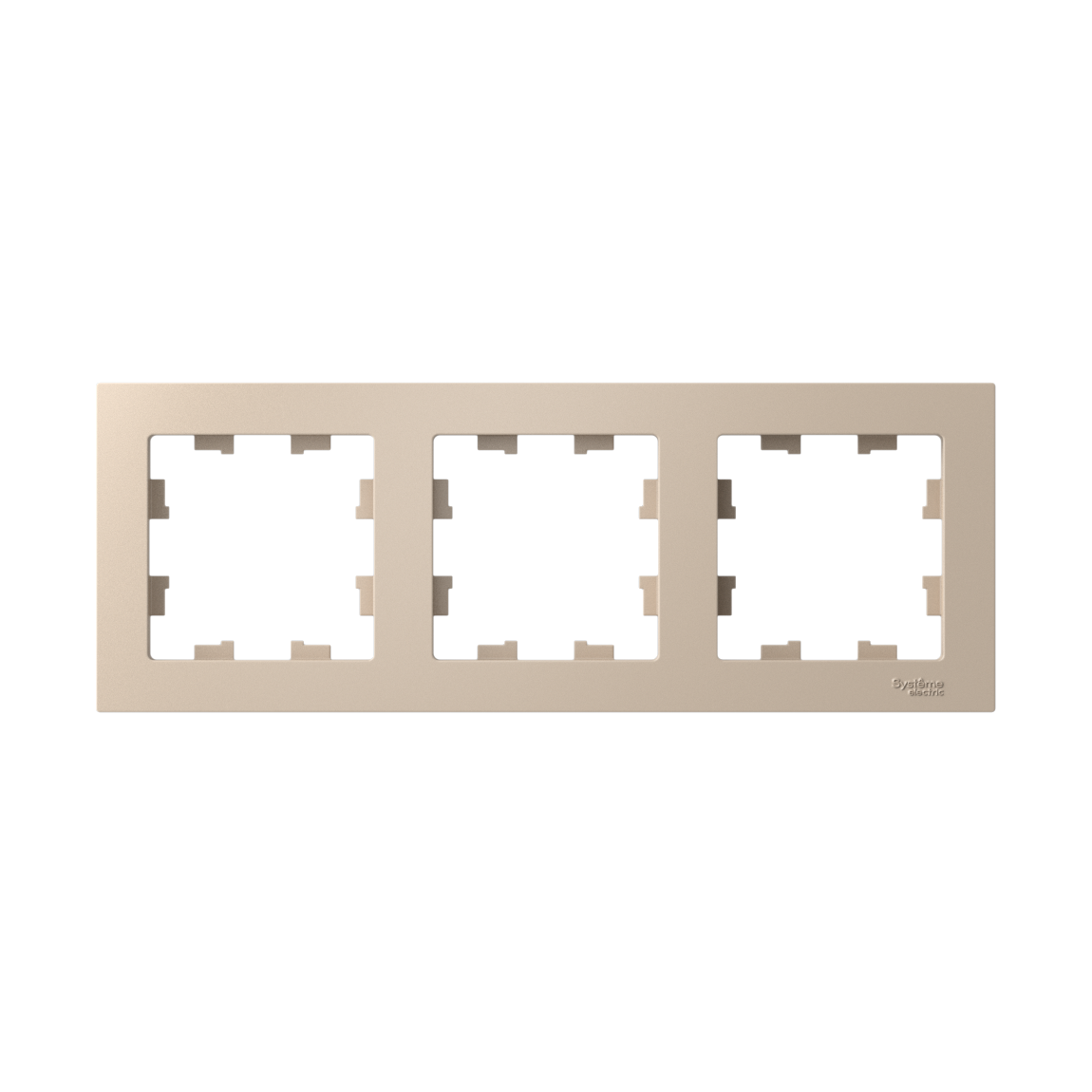 Рамка Systeme Electric (ранее Schneider Electric) серии AtlasDesign в цвете песочный трёхместная. Устанавливается в вертикальном и горизонтальном положениях. Лицевые детали из качественного ABS-пластика, устойчивого к царапинам и УФ-излучению. Позволяет гармонично вписать электроустановочное изделие в интерьер помещения.