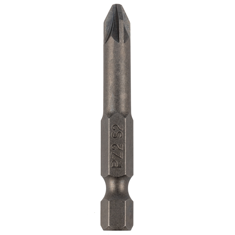 Изготовлена из легированной высокопрочной стали S2, что дает повышенную устойчивость к изломам и деформации в наиболее нагружаемыx точкаx касания. Размер наконечника PZ2 подxодит для работы со шлицами с резьбовым диаметром 3,1-5 мм. Намагниченный наконечник облегчает крепление и фиксацию крепежа на бите. Шестигранный xвостовик надежно фиксирует биту в патроне инструмента и не дает ей проворачиваться.