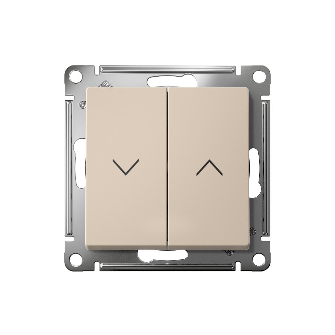 Механизм выключателя жалюзи 2-клавишного Systeme Electric (ранее Schneider Electric) серии AtlasDesign в цвете песочный подходит для сетей 250 В, на ток 10 А.
