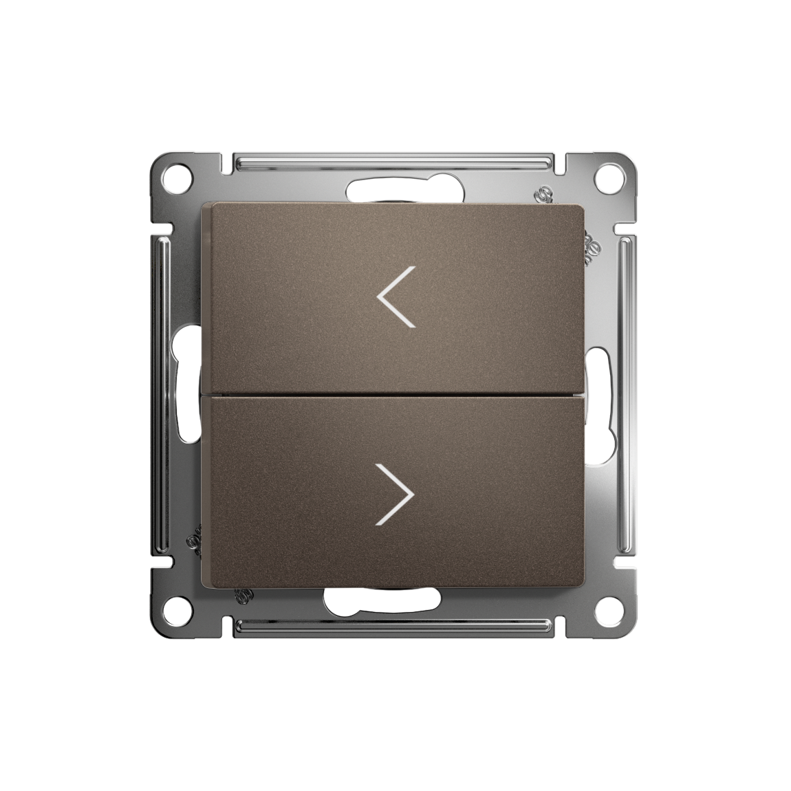 Механизм выключателя жалюзи 2-клавишного Systeme Electric (ранее Schneider Electric) серии AtlasDesign в цвете мокко подходит для сетей 250 В, на ток 10 А.