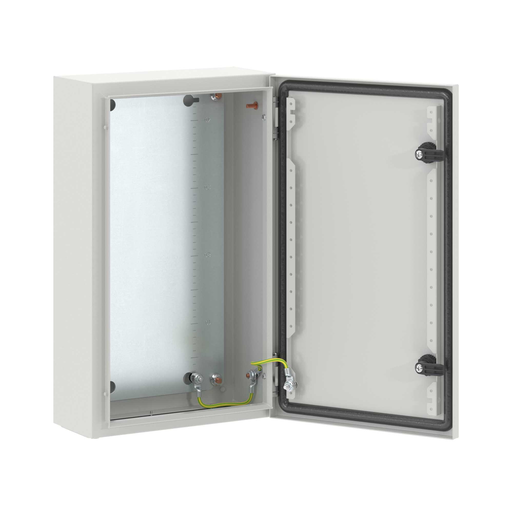 Навесные корпуса STE предназначены для систем автоматизации и распределения электроэнергии. Корпус, дверь, фланец STE изготавливаются из стали толщиной 1,5 мм с атмосферостойким порошковым покрытием, цвет RAL7035. Монтажная плата - из оцинкованной стали 1,8 мм. Корпуса выполнены по технологии сварки из единого листа металла, что обеспечивает высокую нагрузочную способность и защиту от вибраций. Степень защиты IP66, ударопрочность IK10, сейсмостойкость 9 баллов по шкале MSK-64, климатическое исполнение УХЛ1, ОМ2, ОМ3, группа горючести Г1. Комплект поставки: корпус, дверь реверсивная, монтажная плата, дверные рейки, поворотный замок 2 шт., сплошной фланец для ввода кабеля 1 шт., комплект заземления с проводами заземления. Габариты 500x300x150 (ШхВхГ) мм.
