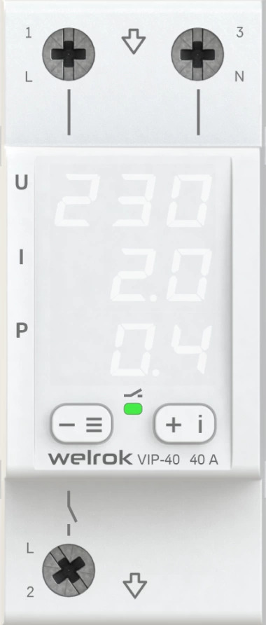 Welrok VIP-40 Реле напряжения с контролем тока 40 А (max 50 A), 8 800 ВА