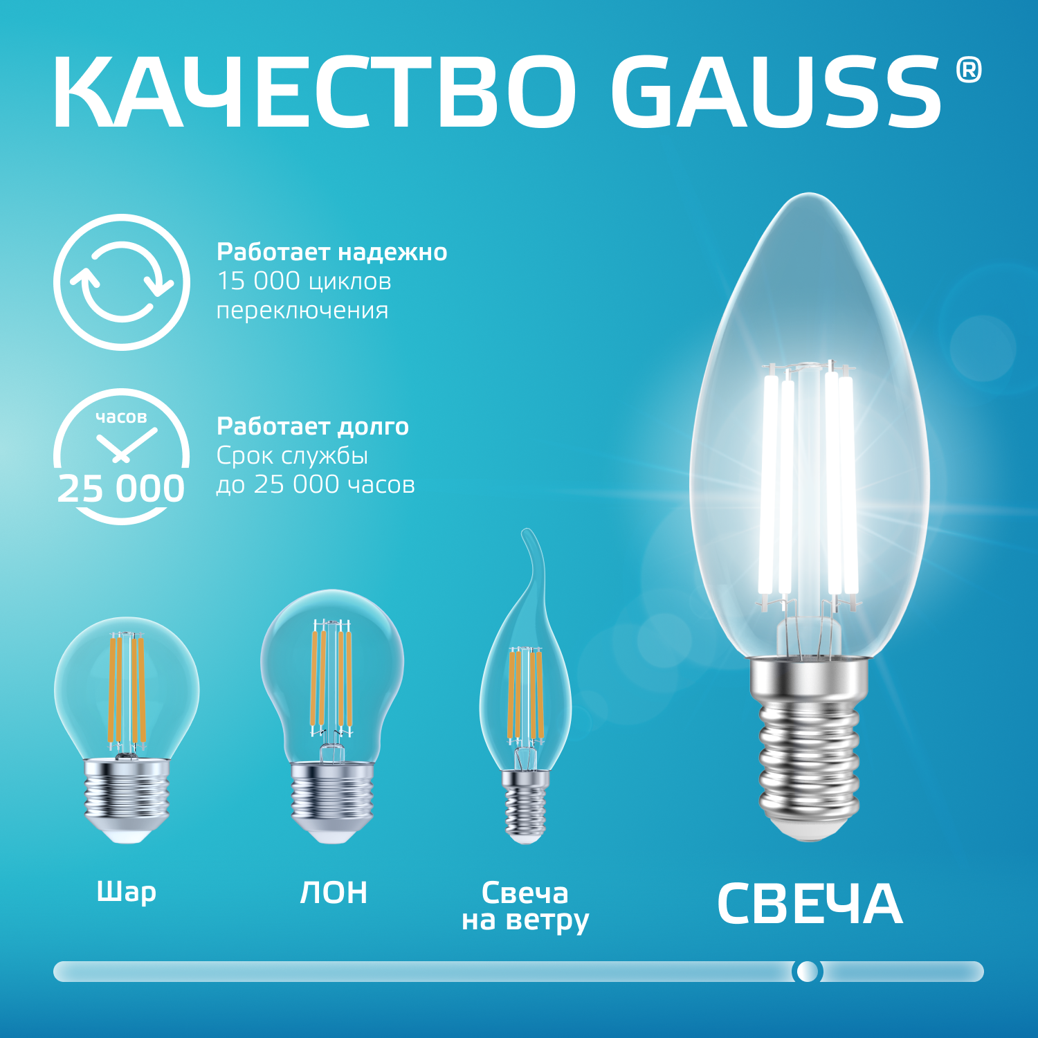 Светодиодные филаментные лампы GAUSS - это новейшие технологии в светотехнике. Лампы имеют привычный вид классических ламп накаливания, освещают пространство на 360о и дают больше света по сравнению с обычными светодиодными лампами за счет прозрачной колбы. Идеально подходят для хрустальных люстр и открытых светильников, а также для реализации дизайнерских решений, где важен вид классических ламп накаливания.