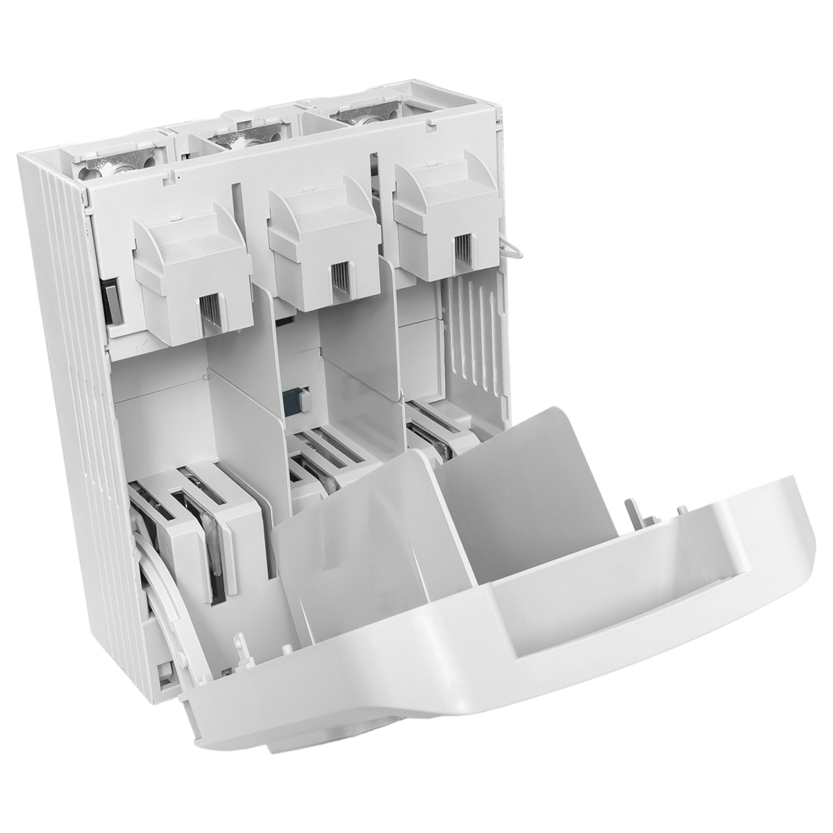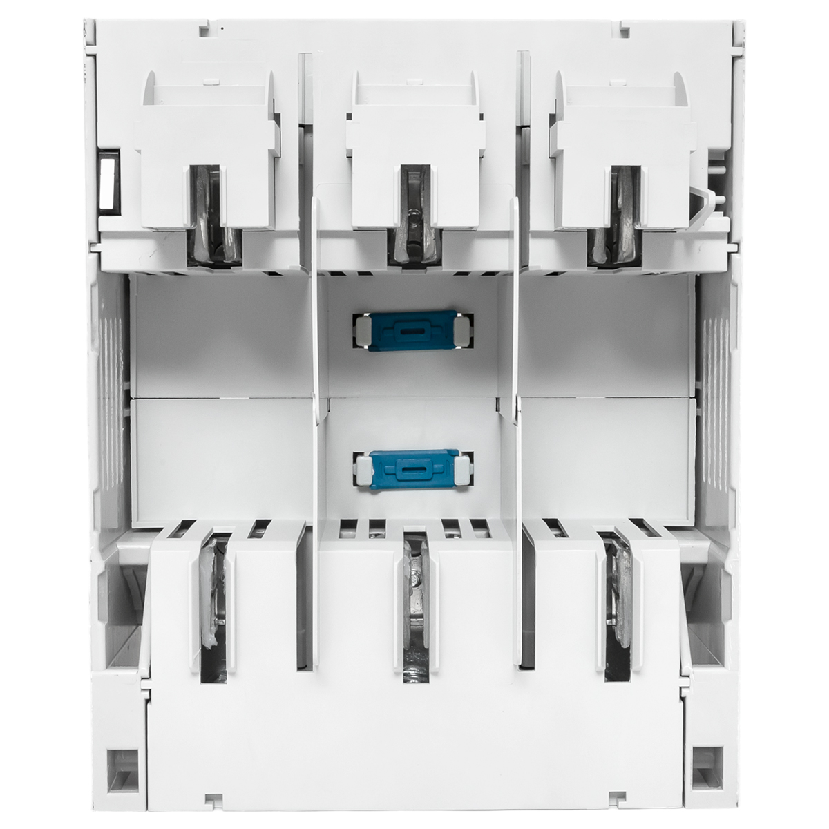 Выключатели-разъединители УВРЭ v2 с дополнительным контактом (NO+NC) откидного типа под предохранители ППН EKF (далее - УВРЭ v2) предназначены для ручного включения-отключения и для защиты от коротких замыканий и перегрузки цепей переменного тока номинальным напряжением до 690В частотой 50Гц (предохранители в комплект поставки не включены). Применяются в вводно-распределительных устройствах, распределительных и шкафах управления и др. Видимый разрыв обеспечивается благодаря откидной крышке, оснащенной держателями предохранителей. При открывании крышки происходит разрыв цепи (первый разрыв происходит в верхней части). Она также выполняет функцию фронтальной защиты от прикосновений.