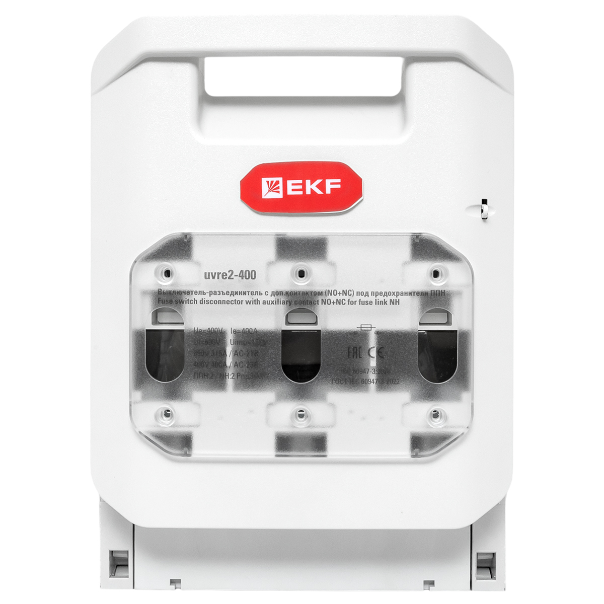 Название производителя: Выключатель-разъединитель УВРЭ v2 400А с дополнительным контактом (NO+NC) откидного типа под предохранители ППН (габ.2) EKF