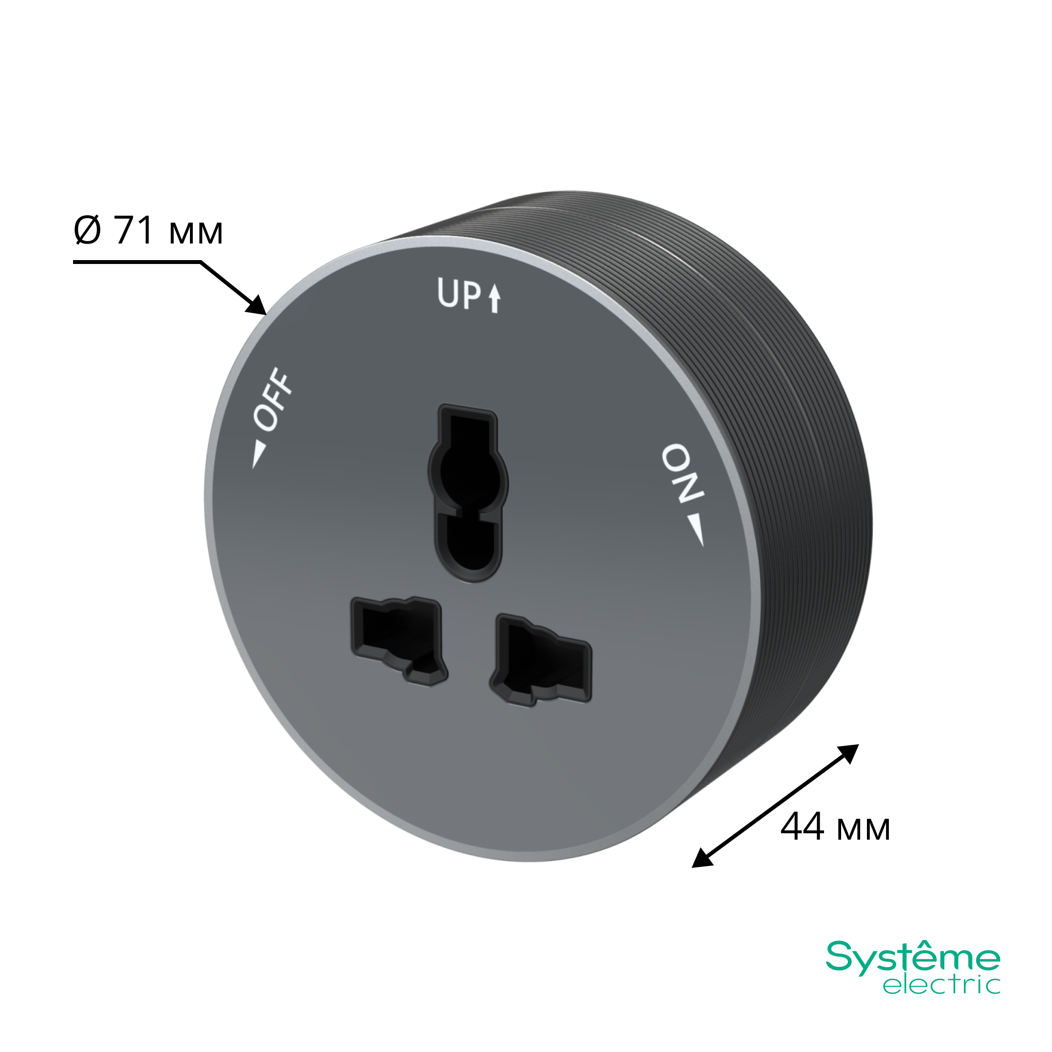Название производителя: MULTITRACK Розетка универсальная круглая 13 А/250 В ГРАФИТ