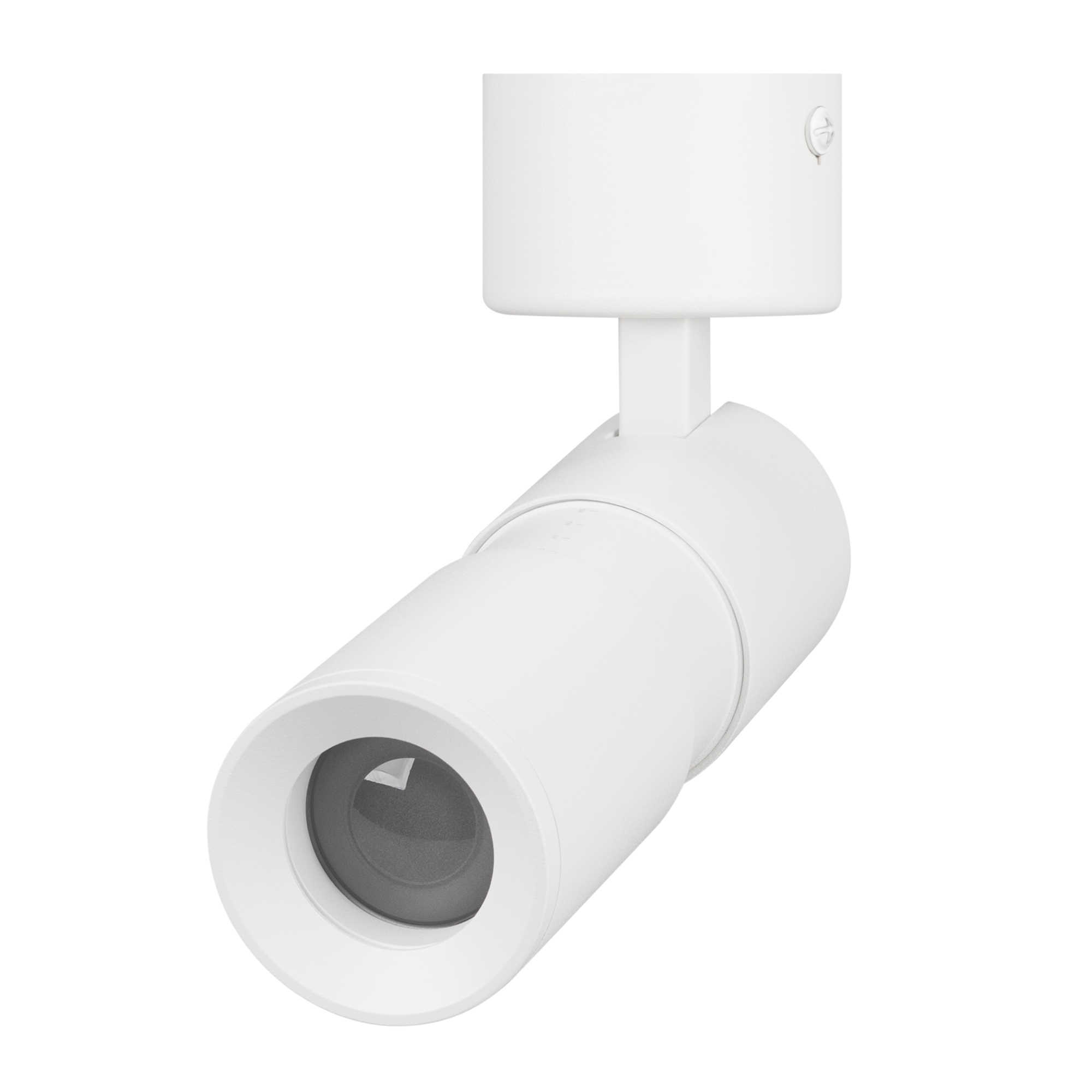 Накладной откидной поворотный светильник, 12Вт. Цвет свечения ДНЕВНОЙ 4000K, световой поток 720 лм, 60 лм/Вт, регулируемый угол 8-80°, CRI>90. Корпус круглый, металл, цвет белый, IP20. Размеры DxHxL Ø55x132~163,5 мм. Размер чаши Ø60,7x33,5 мм. Входное напряжение AC220-240V, мощность 12Вт. Драйвер встроенный (24-40V, 300 мА). Пульсация <1%.