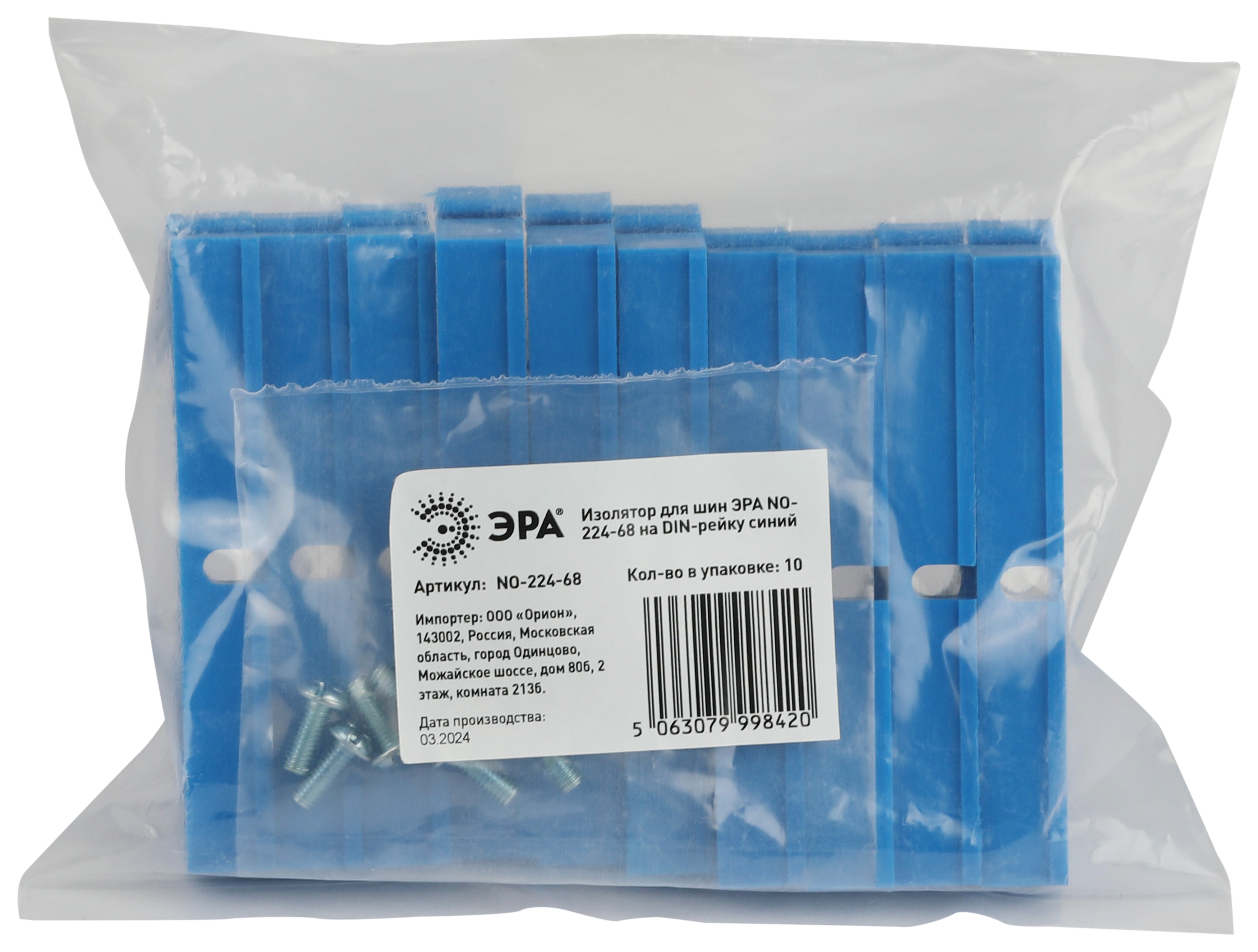 Название производителя: Изолятор для шин ЭРА NO-224-68 на DIN-рейку синий
