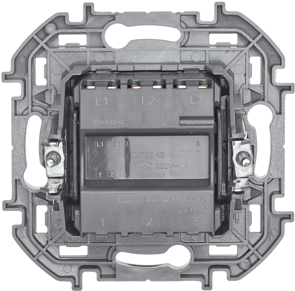 Legrand/Daccord INSPIRIA Антрацит Выключатель 3-кл, винтовые клеммы, 10 AX , 250 В.