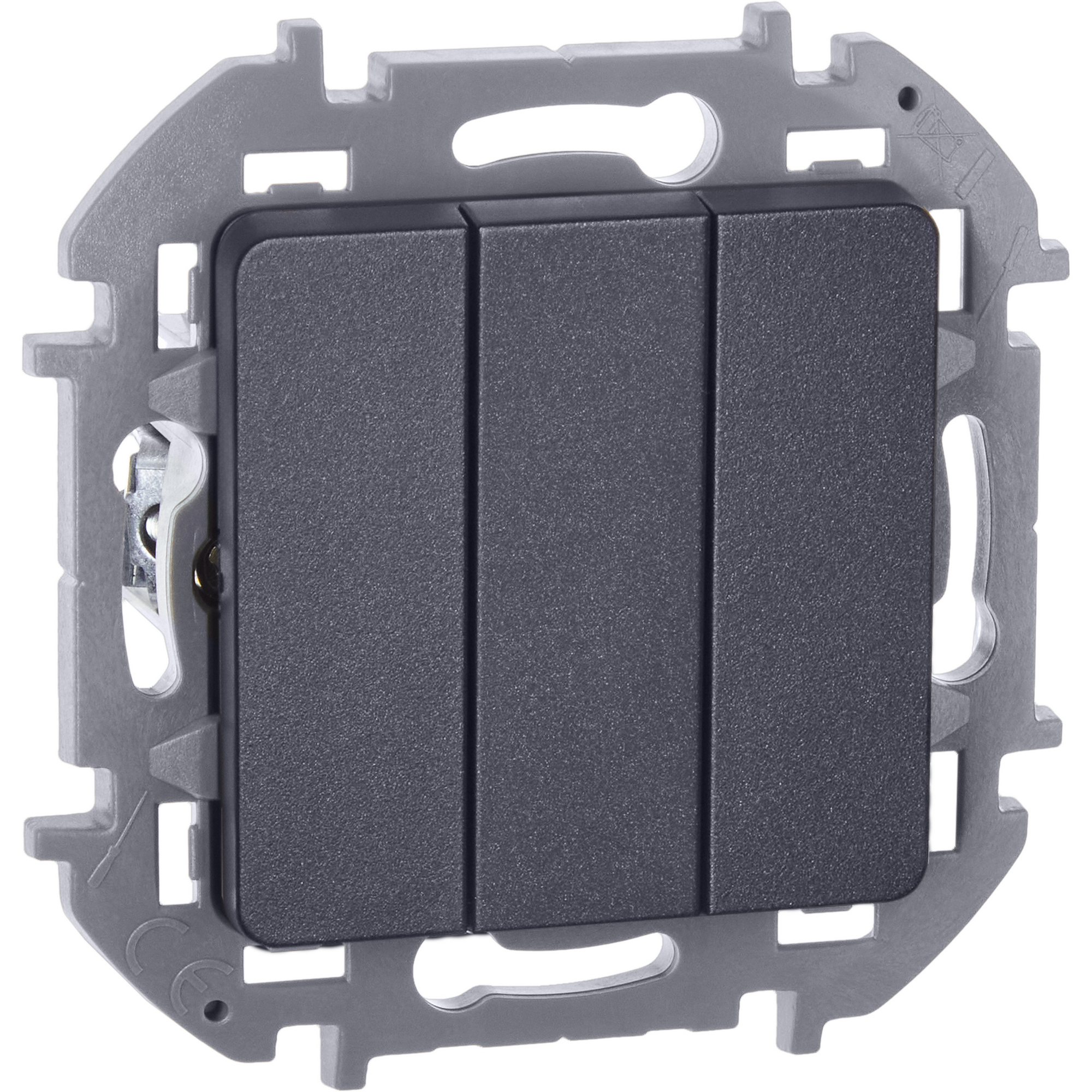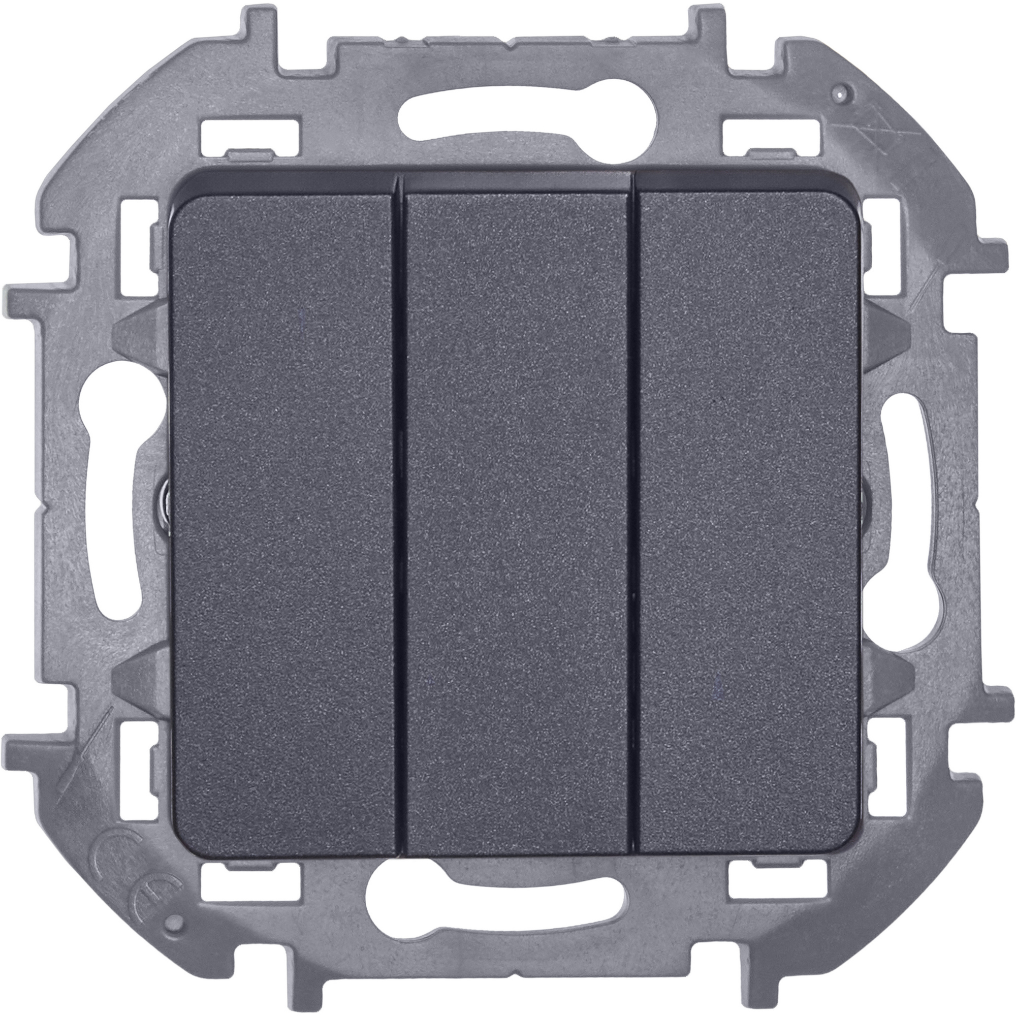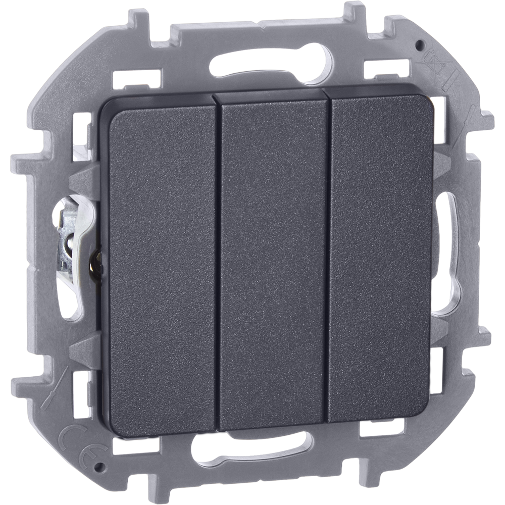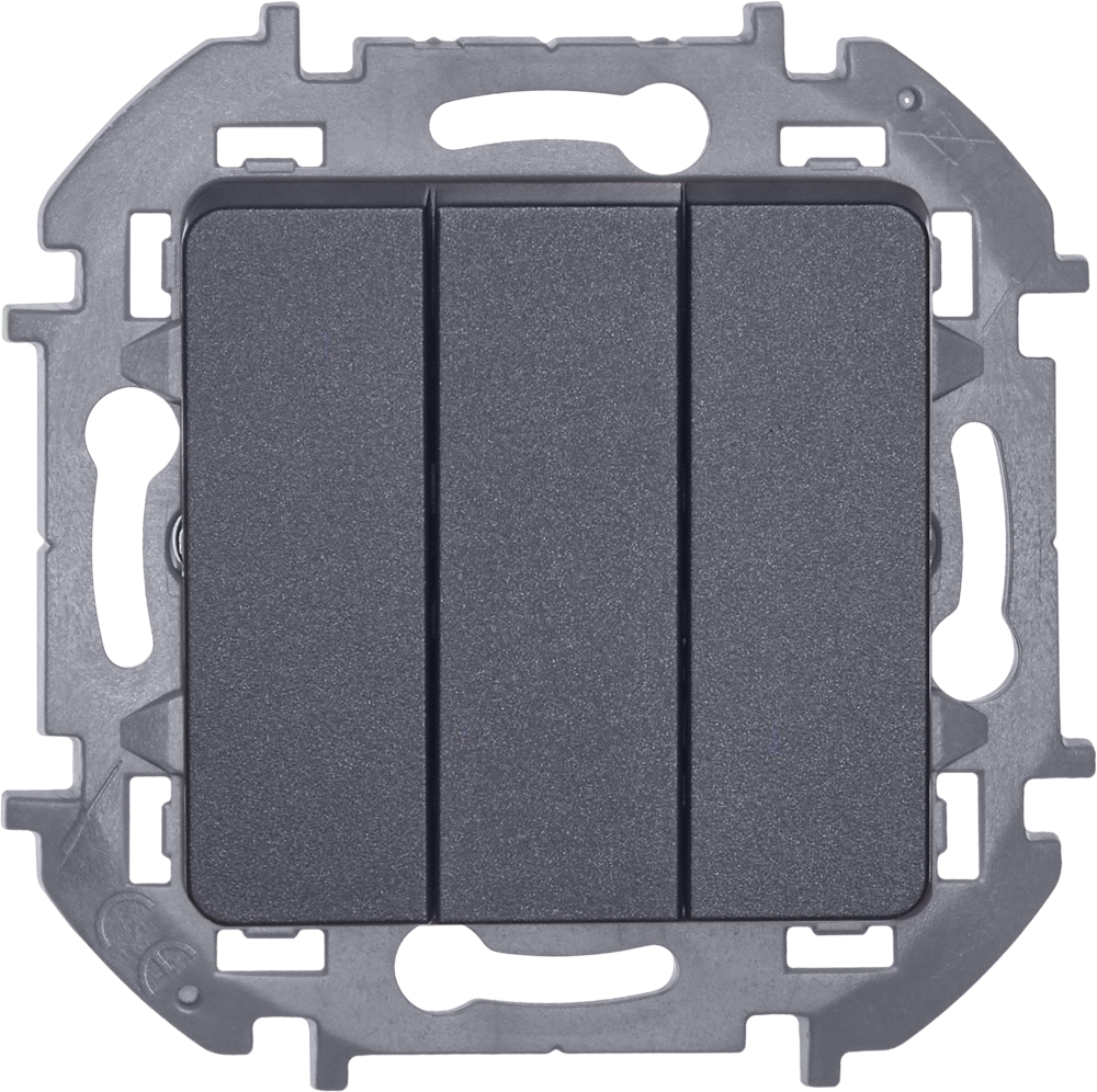 Выключатель трёхклавишный скрытого монтажа Legrand/Daccord Inspiria, цвет "Антрацит", номинальный ток 10АХ, напряжение ~250В, винтовые зажимы.