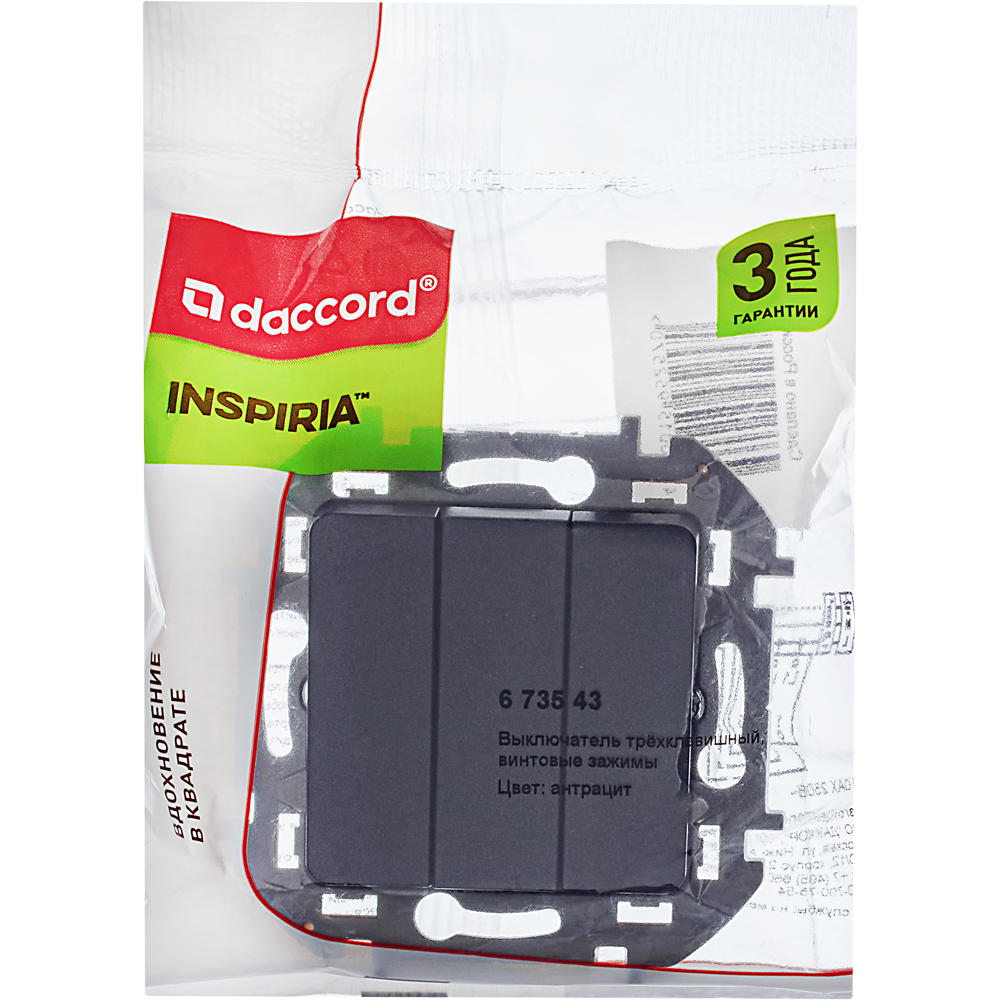 Название производителя: Выключатель трёхклавишный - Legrand/Daccord Inspiria - 10АХ 250В винтовые зажимы - антрацит