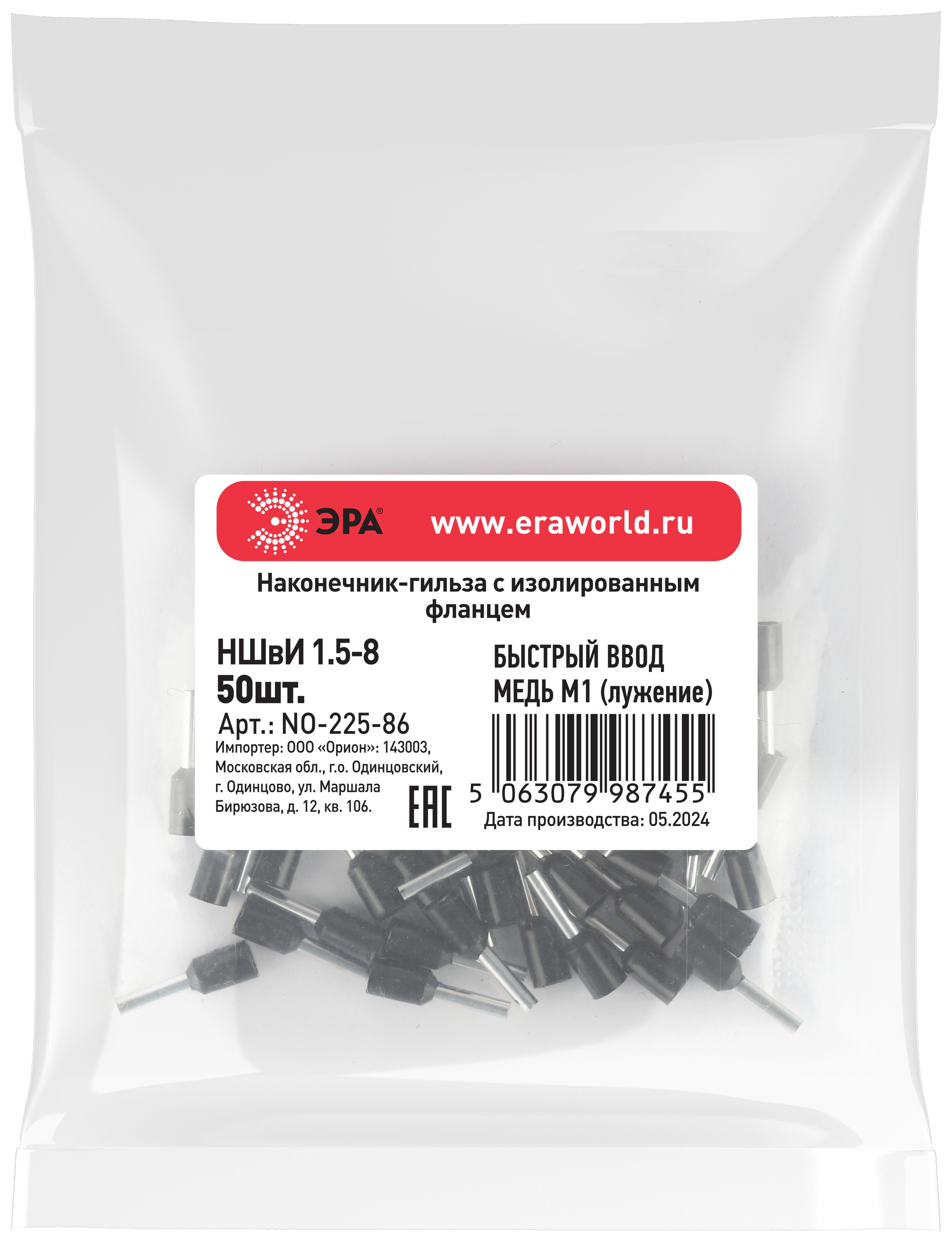 Название производителя: Наконечник-гильза ЭРА NO-225-86 НШвИ 1.5-8 с изолированным фланцем упаковка 50 шт
