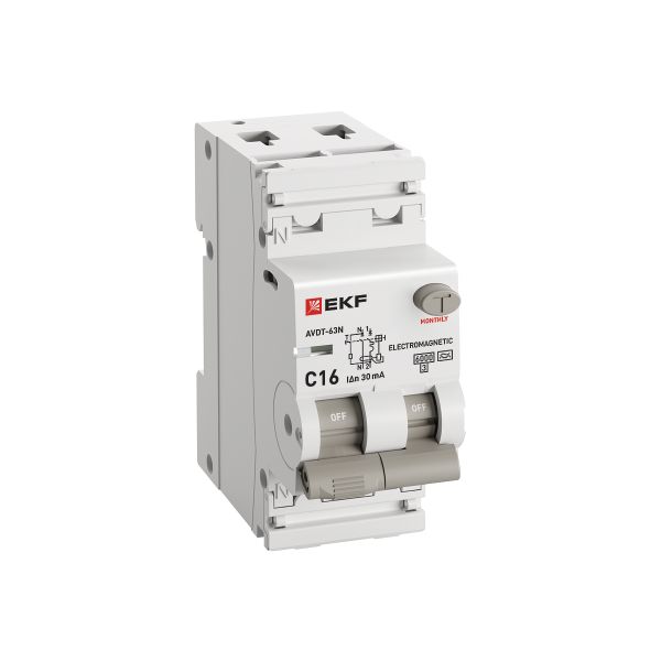 EKF PROxima Автоматический выключатель дифференциального тока АВДТ-63N 1P+N 16А 30мА характеристика C тип A электромеханический 6кА.