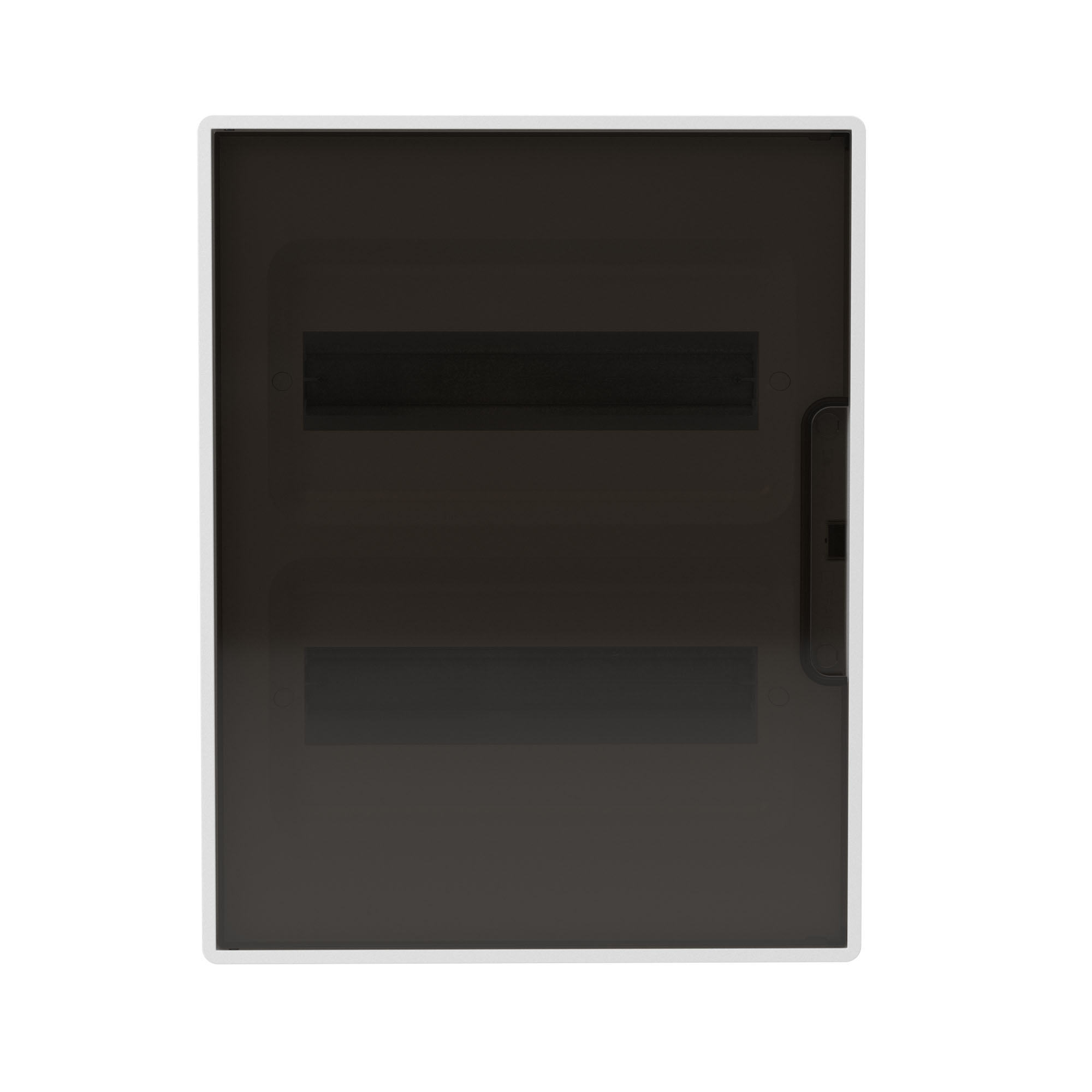 Название производителя: Щиток 24 мод настенный Фрейм (FRAME), белый, с тонированной дверцей, с 4 шинами PEN (2шт на 8 отв. и 2шт на 6 отв)