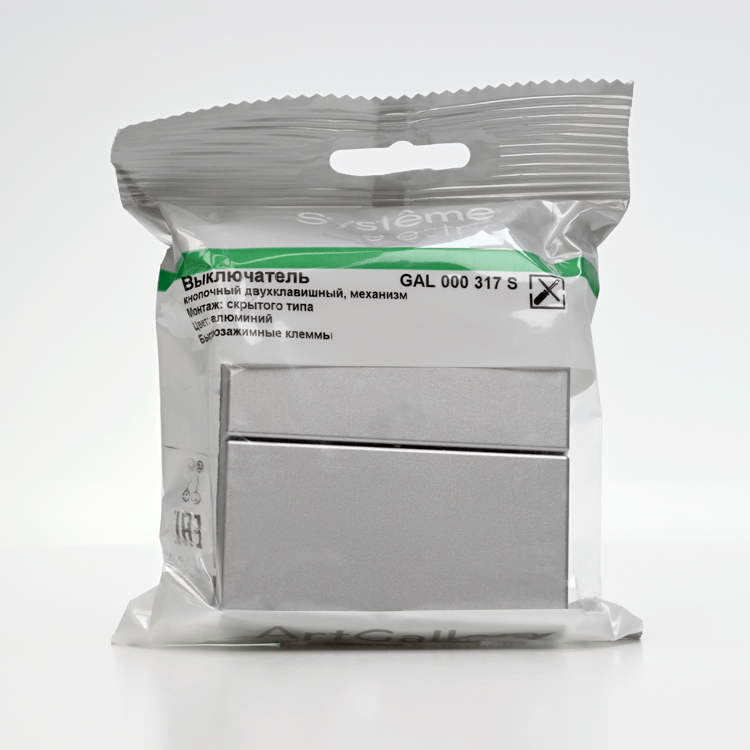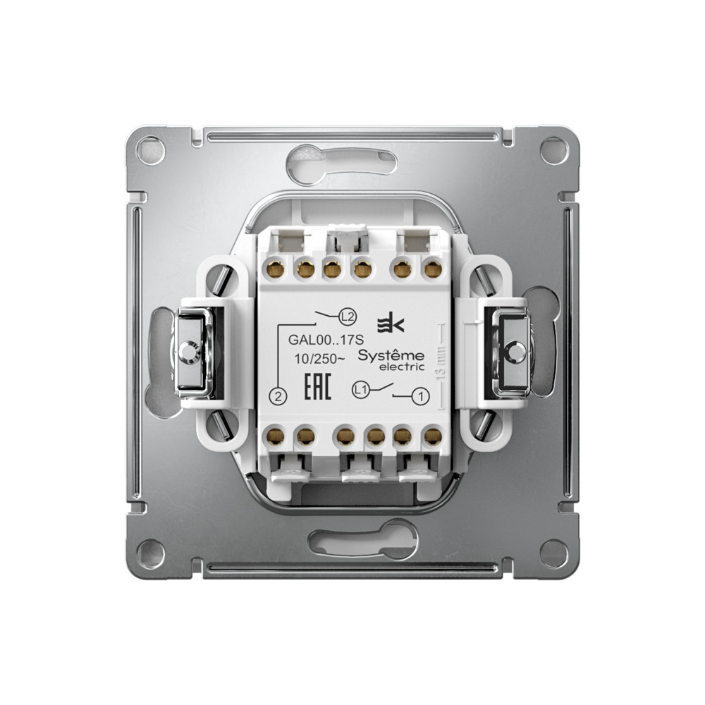 Systeme Electric ArtGallery Алюминий Выключатель 2-клавишный кнопочный, 10АХ, механизм, быстрозажим. клем.