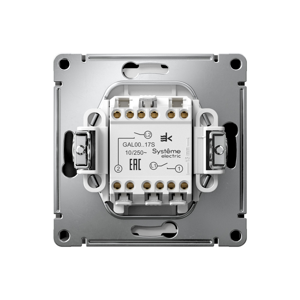 Механизм с быстрозажимными клеммами Systeme Electric серии ArtGallery в цвете карбон выключателя 2-клавишного с самовозвратом подходит для сетей 250 В, на ток 10 А. С помощью новых быстрозажимных клемм монтаж стал быстрее. Для подключения не требуется отвертка. К изделиям в этом роскошном цвете приятно прикоснуться. Лицевые детали из качественного ABS-пластика, устойчивого к царапинам и УФ-излучению. Лучший промышленный дизайн (по итогам премии МИНПРОМТОРГ 2023).